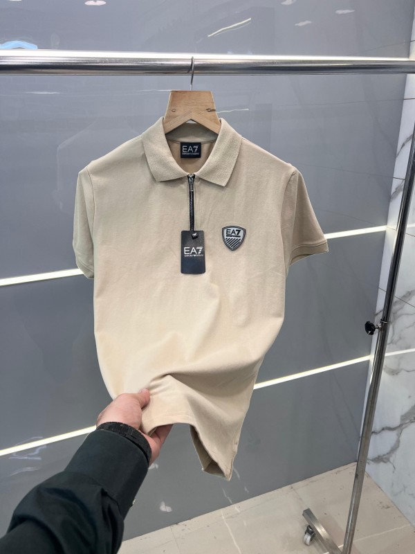 Emporio Arman_i Patch Logo with Zip Style T-shirt Beige Sale offer (512)