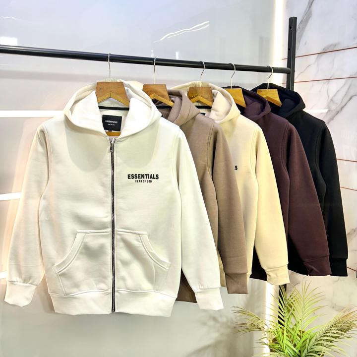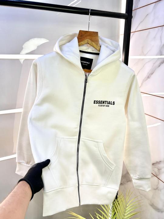 Essential Fear Of God White Imported Back Printed Super Premium Zipper Hoodie F2205-WH