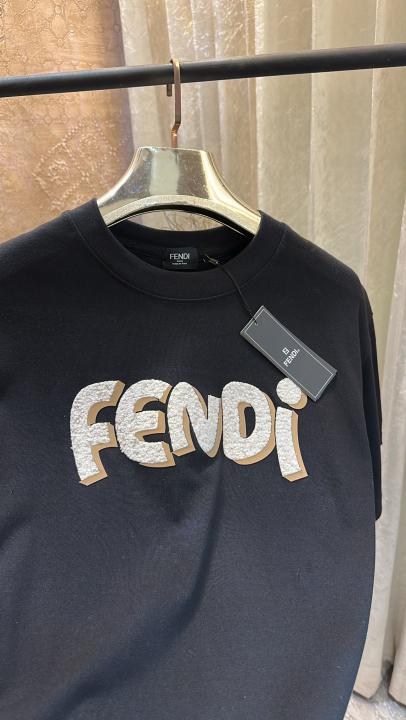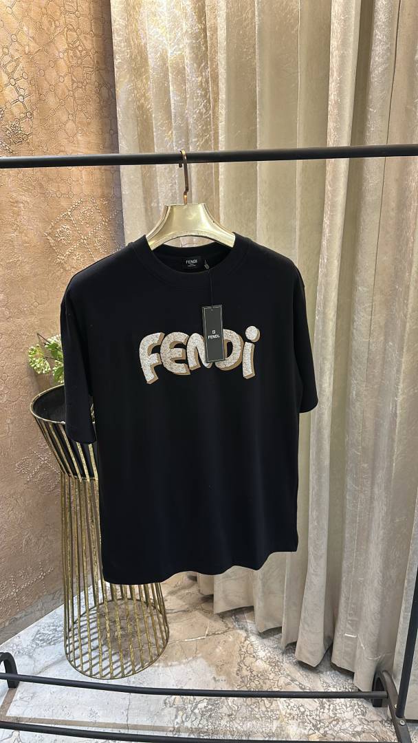 FEND_I LOGO EMBOSSED PREMIUM BLACK TSHIRT