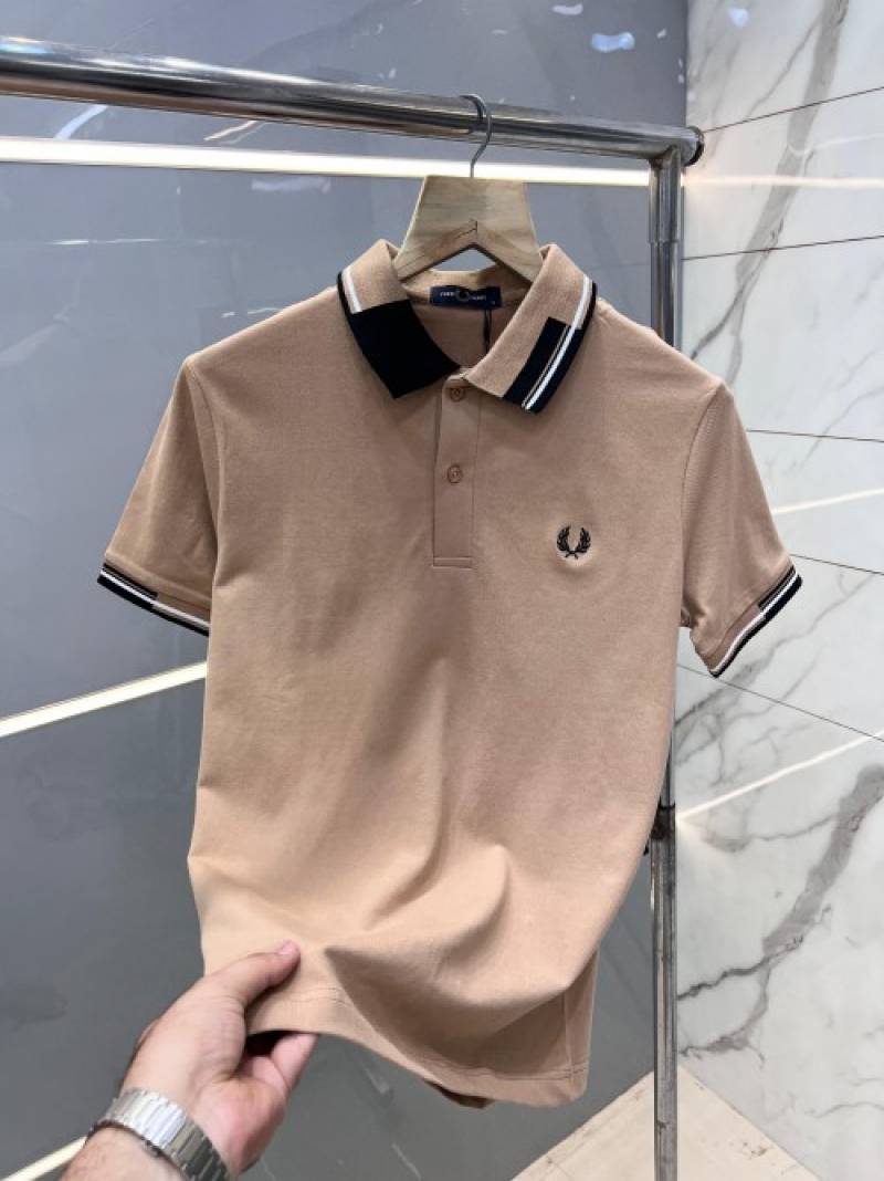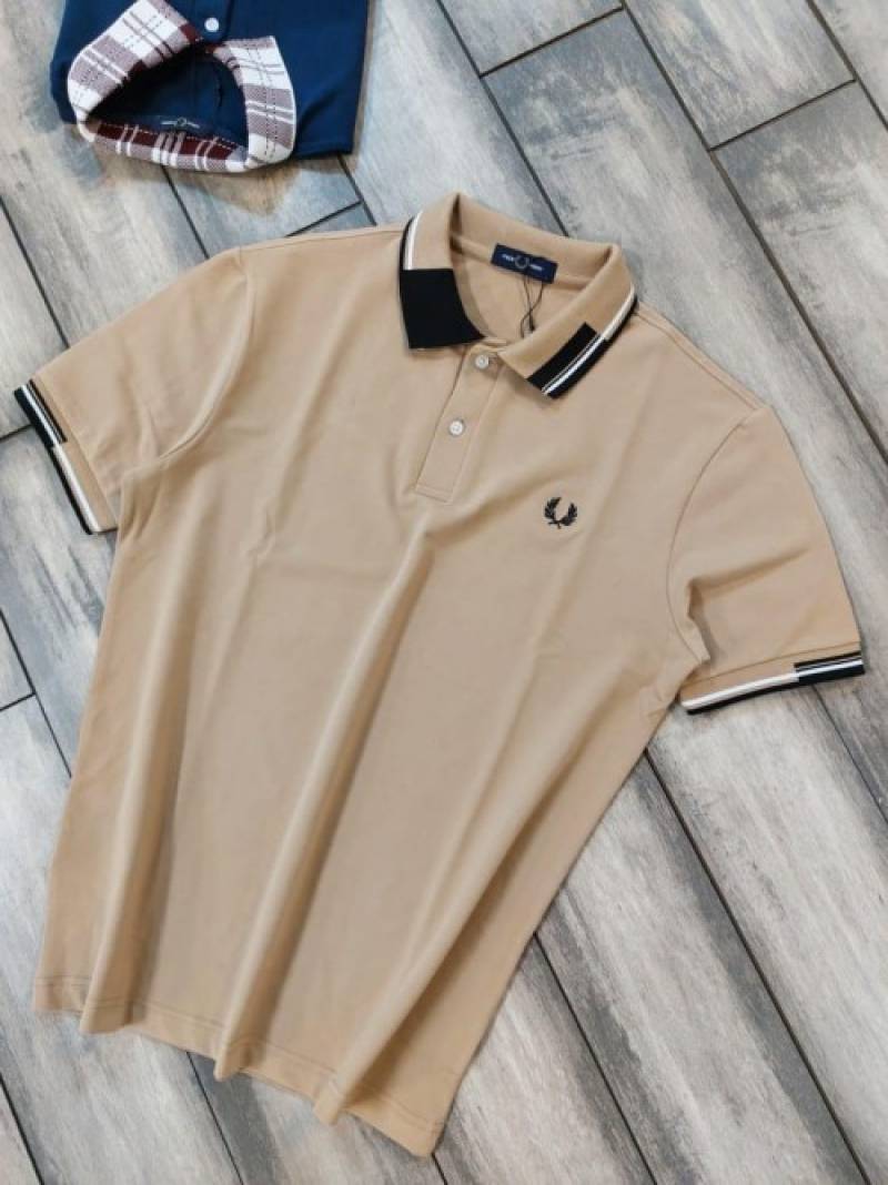 Fred Perr y Beige Premium Polo T shirt With 240 gsm Pique fabric with Collar Design and Embroidered Logo 2736