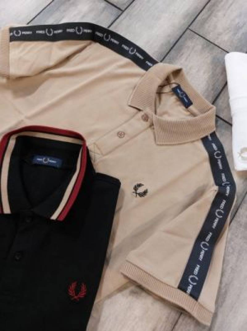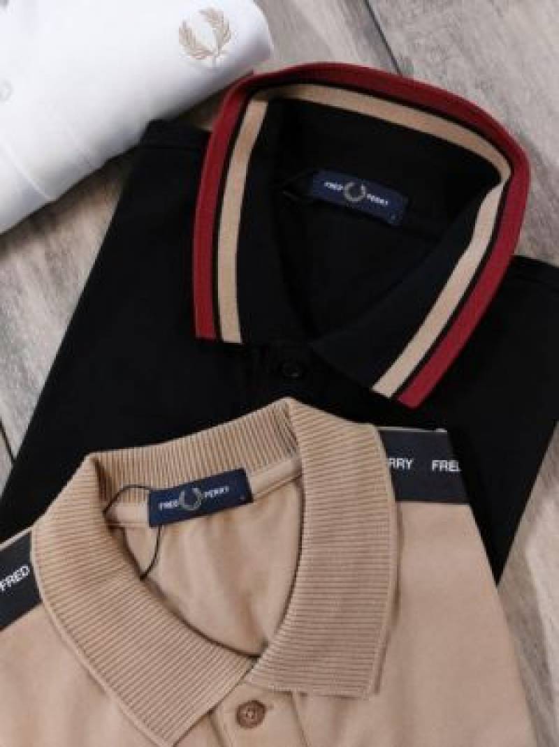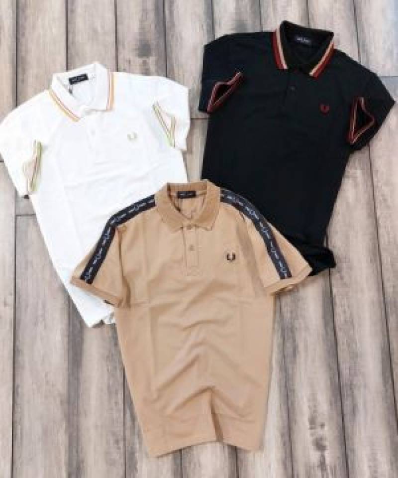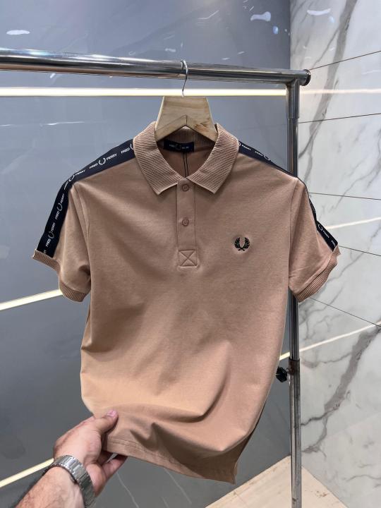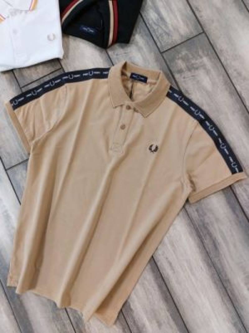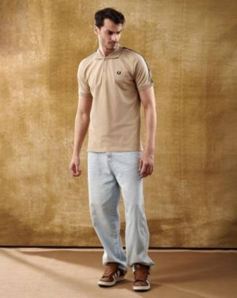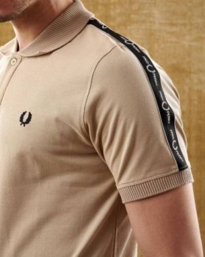 Fred Perr y Beige Premium Polo T shirt With 240 gsm Pique fabric with Shoulder Strip Design and Embroidered Logo 2732