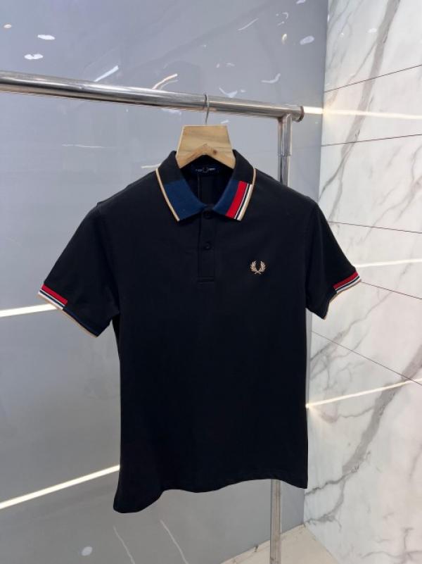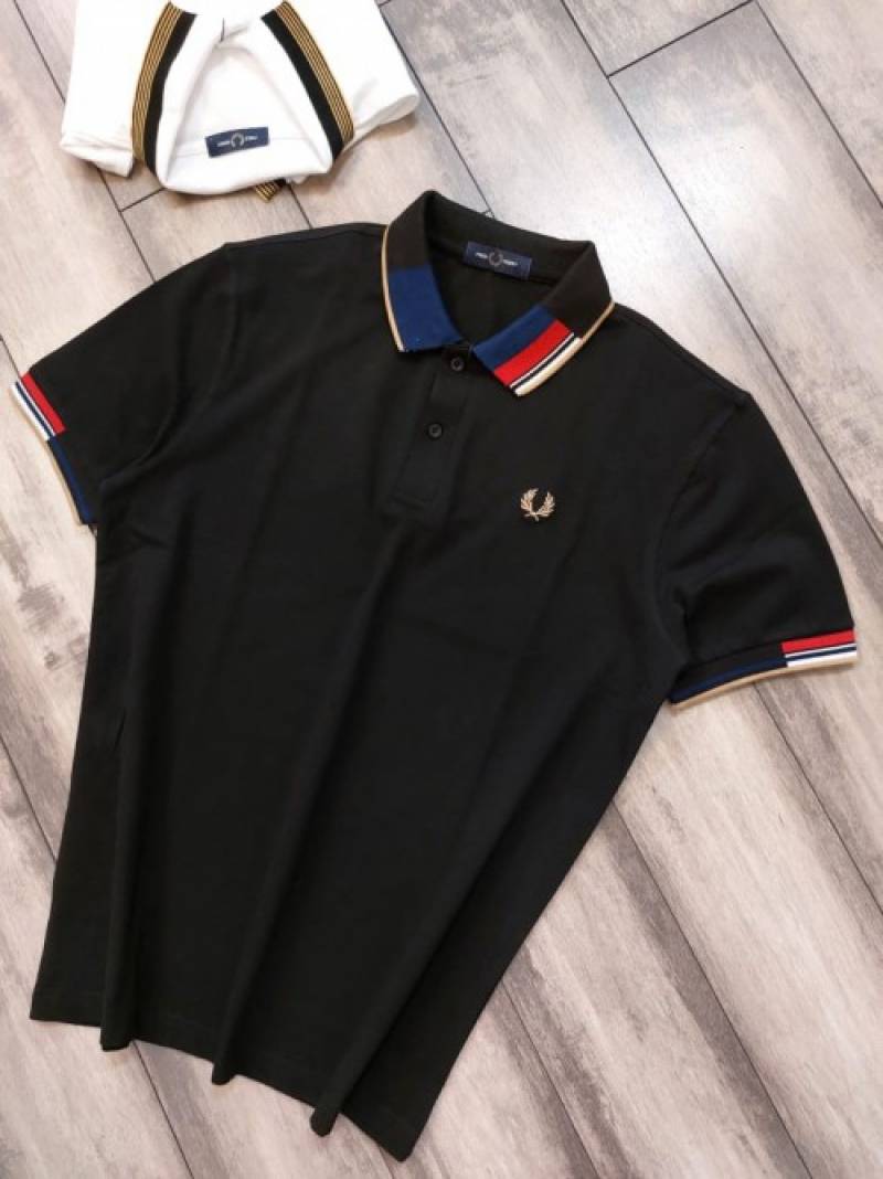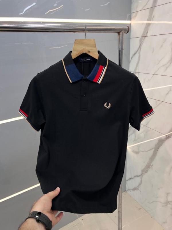 Fred Perr y Black Premium Polo TShirt with 240 gsm interlock cotton lycra fabric and Collar Design with Embroidered Logo 2502