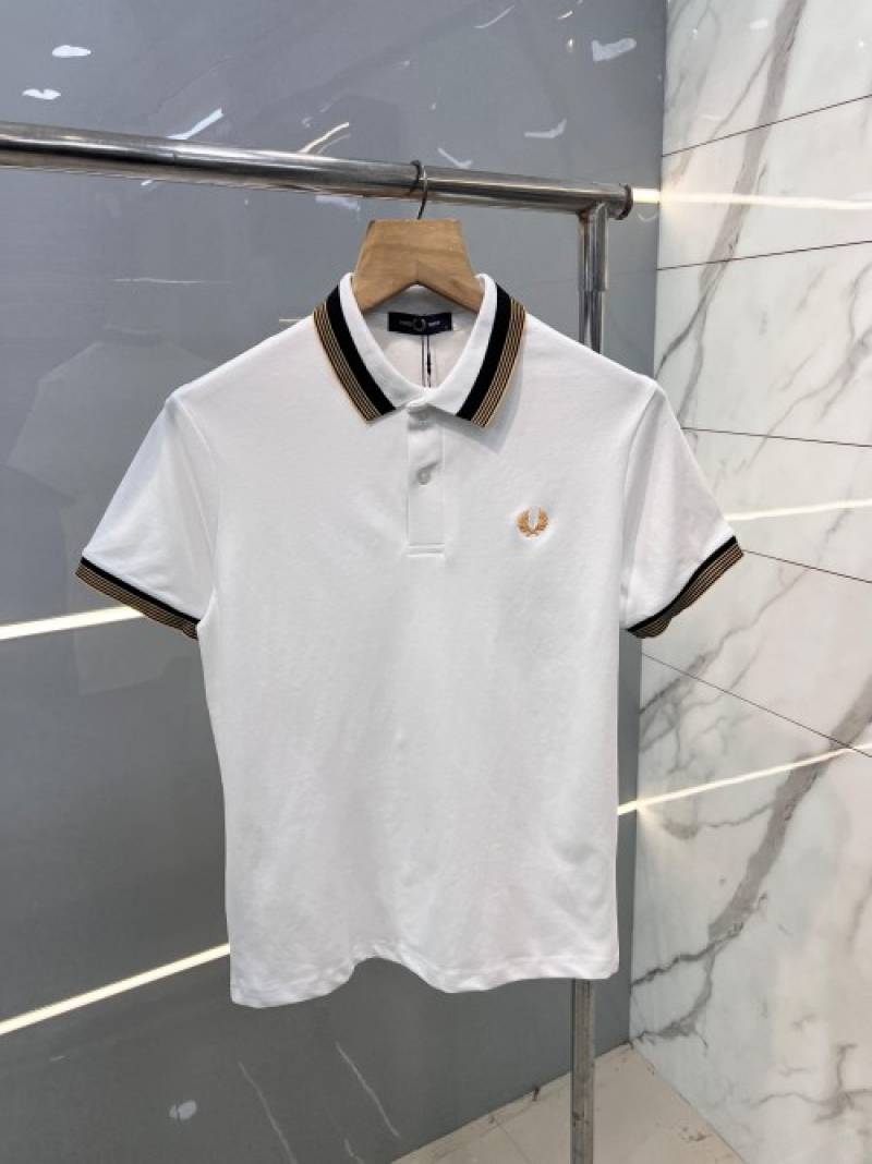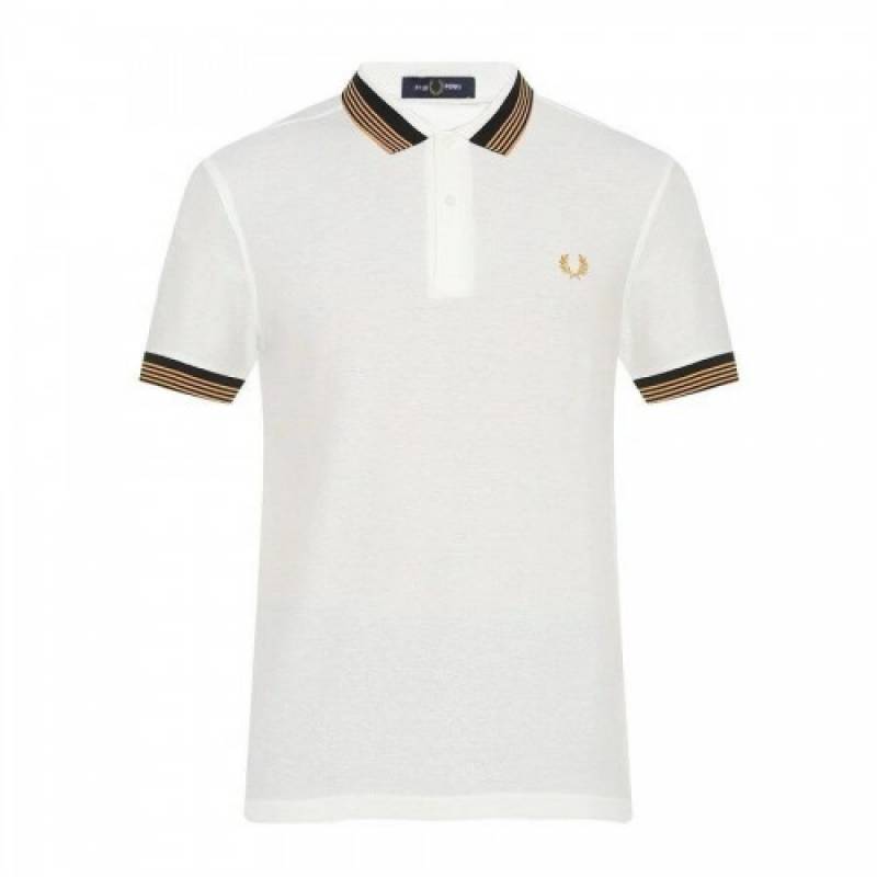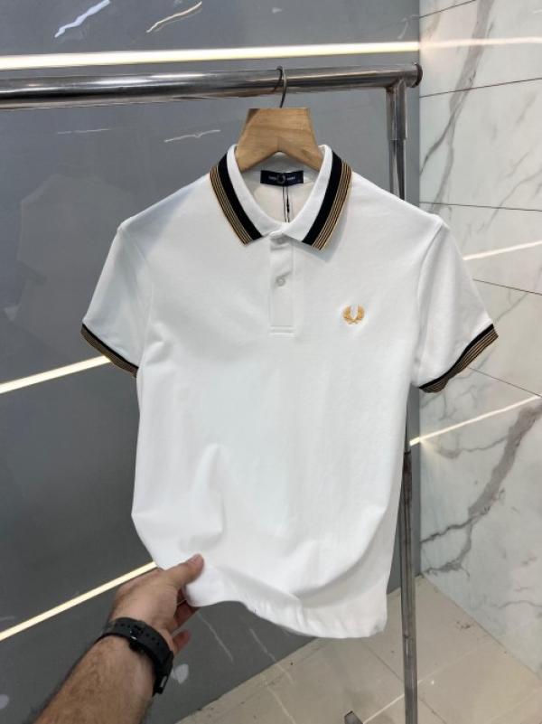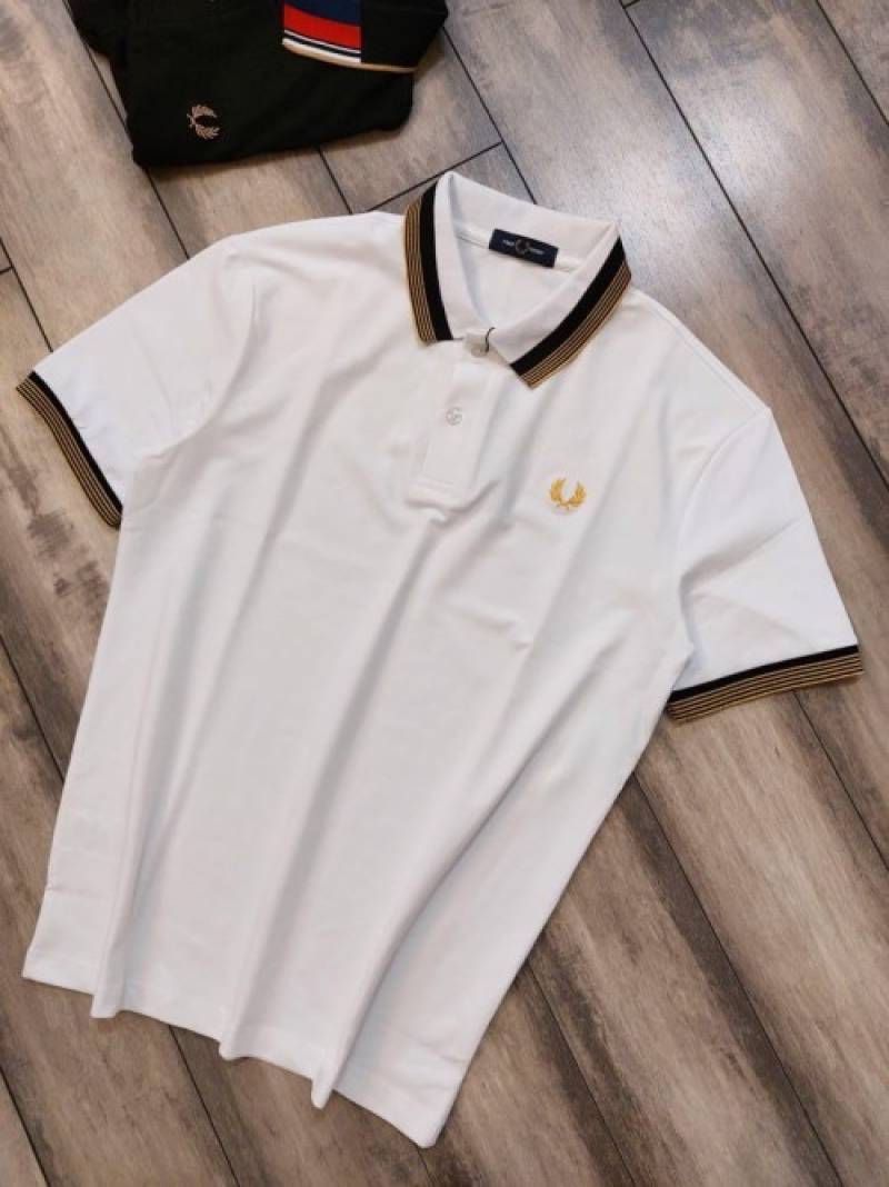 Fred Perr y White Premium Polo TShirt with 240 gsm interlock cotton lycra fabric and Collar Design with Embroidered Logo 2508