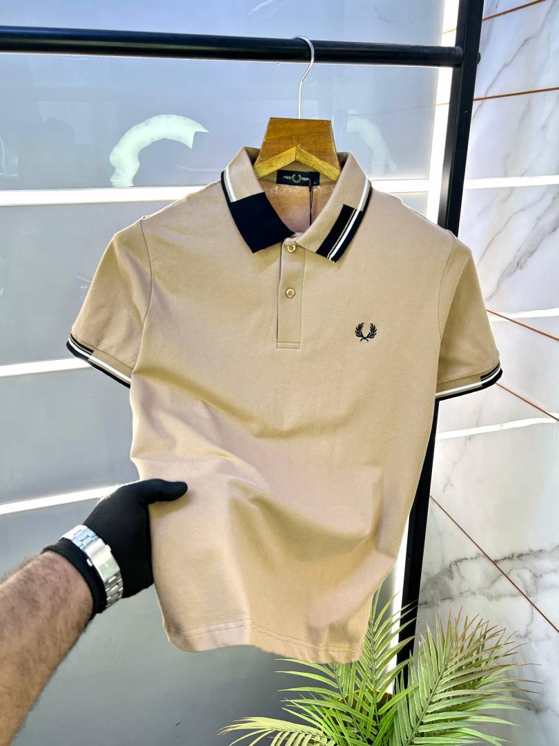 Fred Perry Beige Polo Premium Collar Neck T-shirt F2872-BE