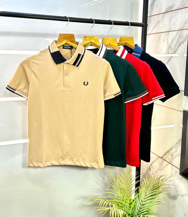 Fred Perr y Green Premium Cotton Lycra Pique fabric Polo Tshirt with Front Design and Embroidered Logo 2933