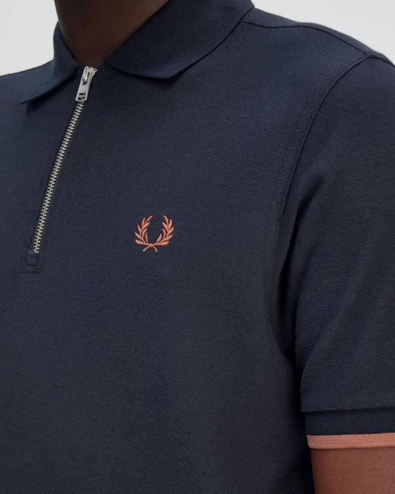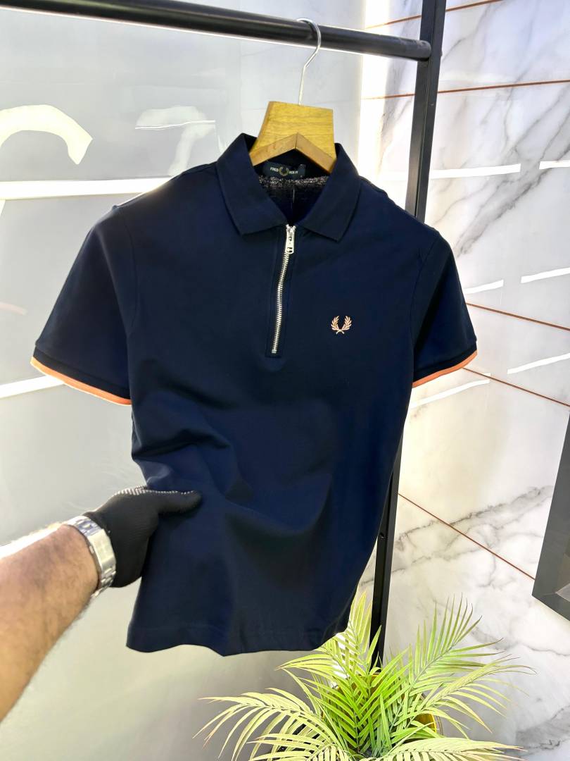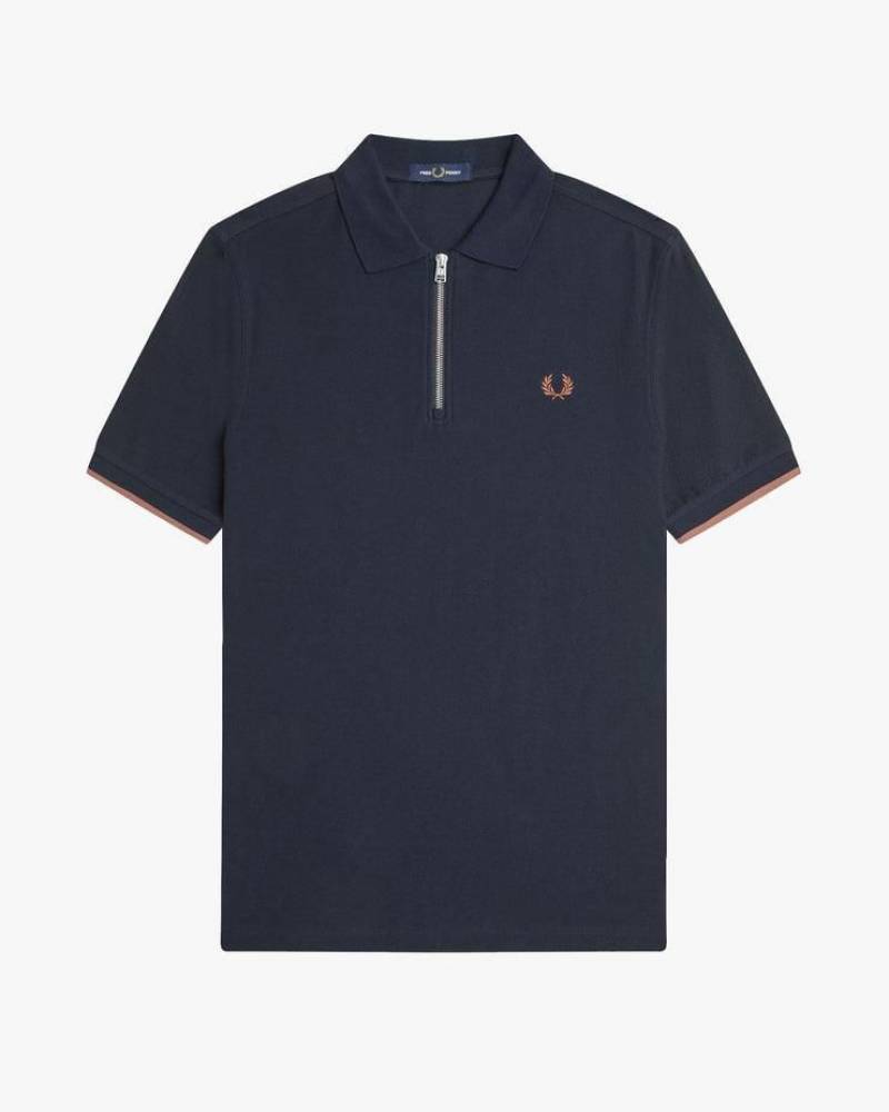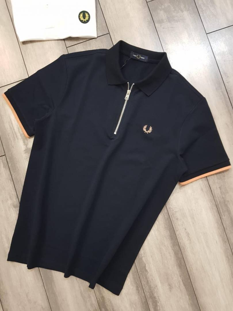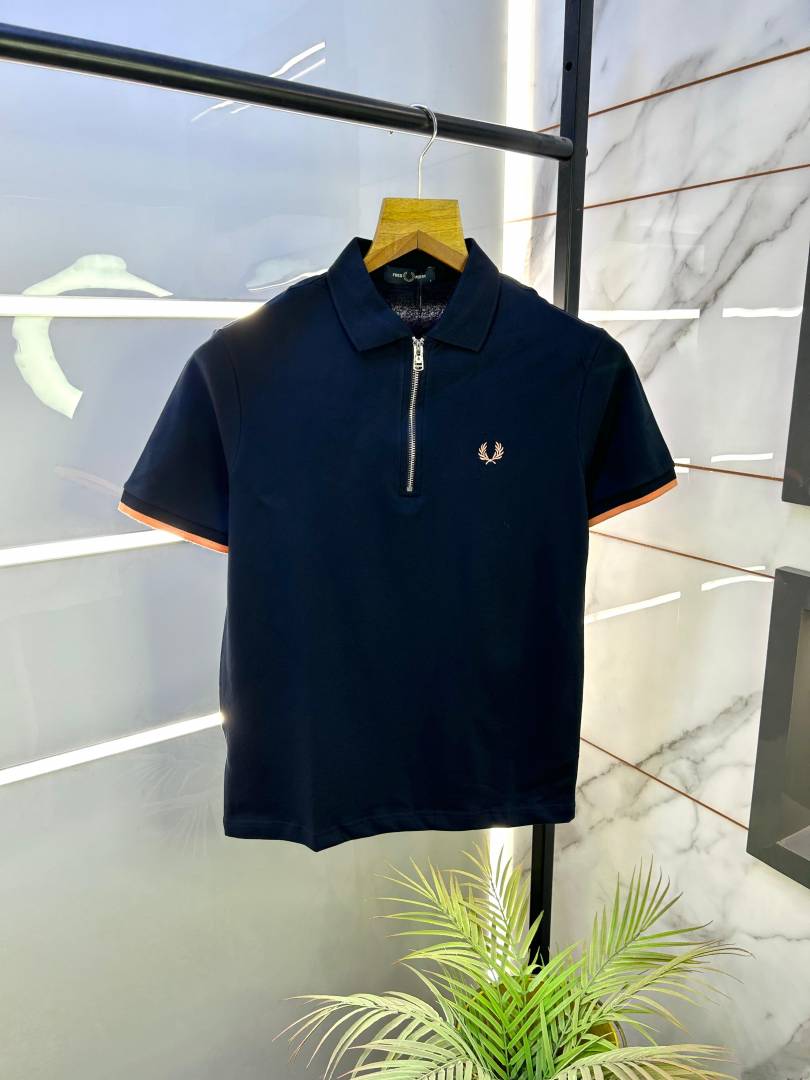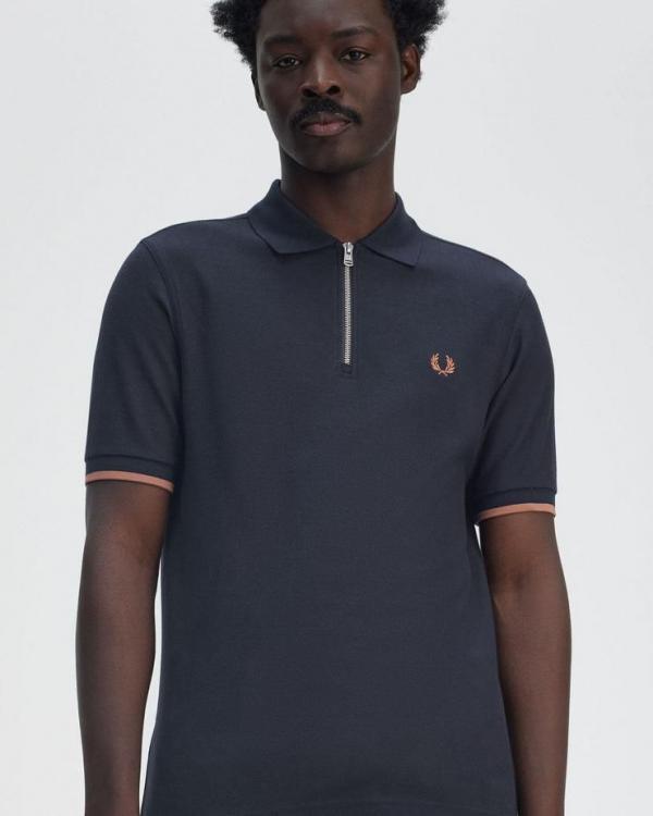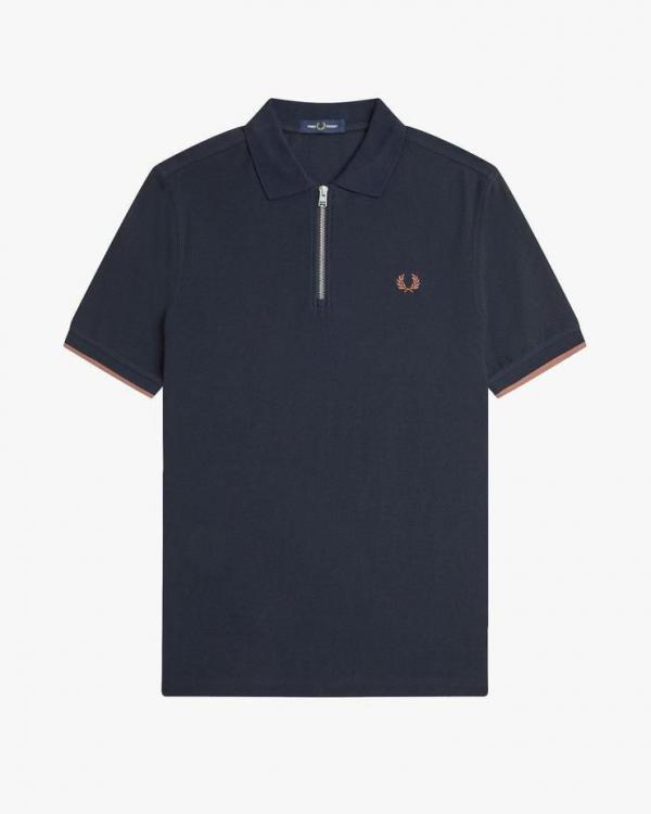 Fred Perry Navy Zipper Polo Premium Collar Neck T-shirt F2650-NY