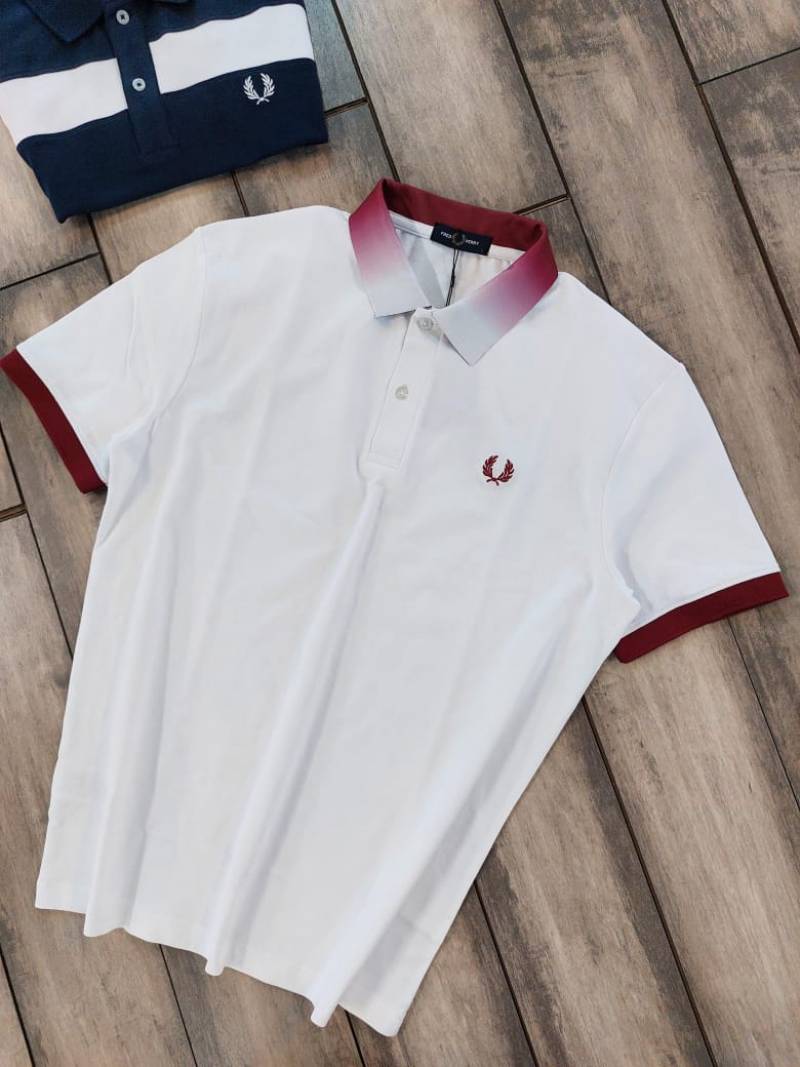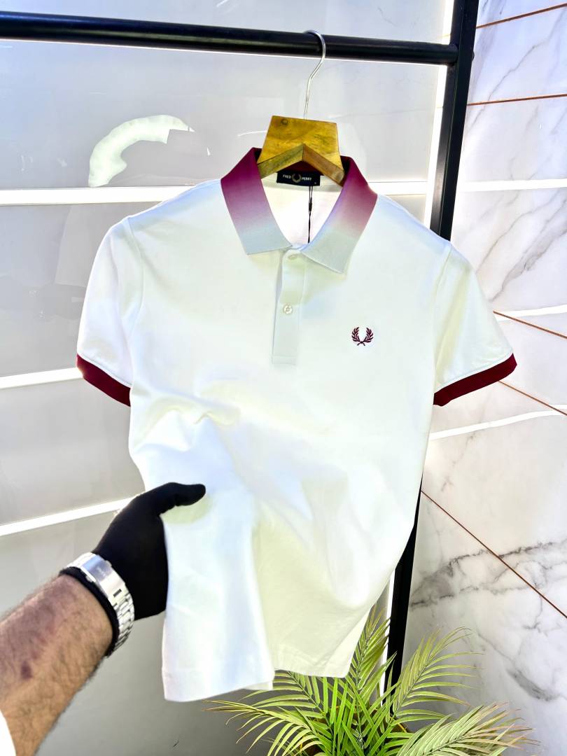 Fred Perry White Polo Premium Collar Neck T-shirt F3052-WH
