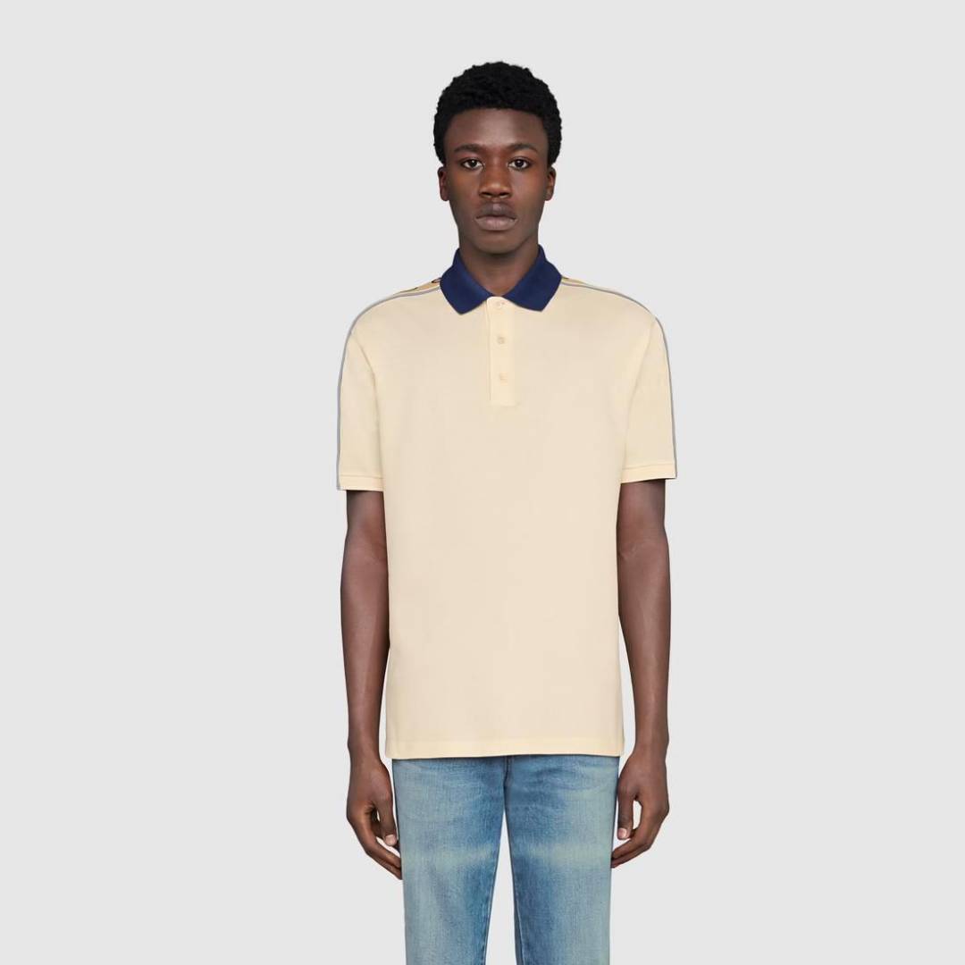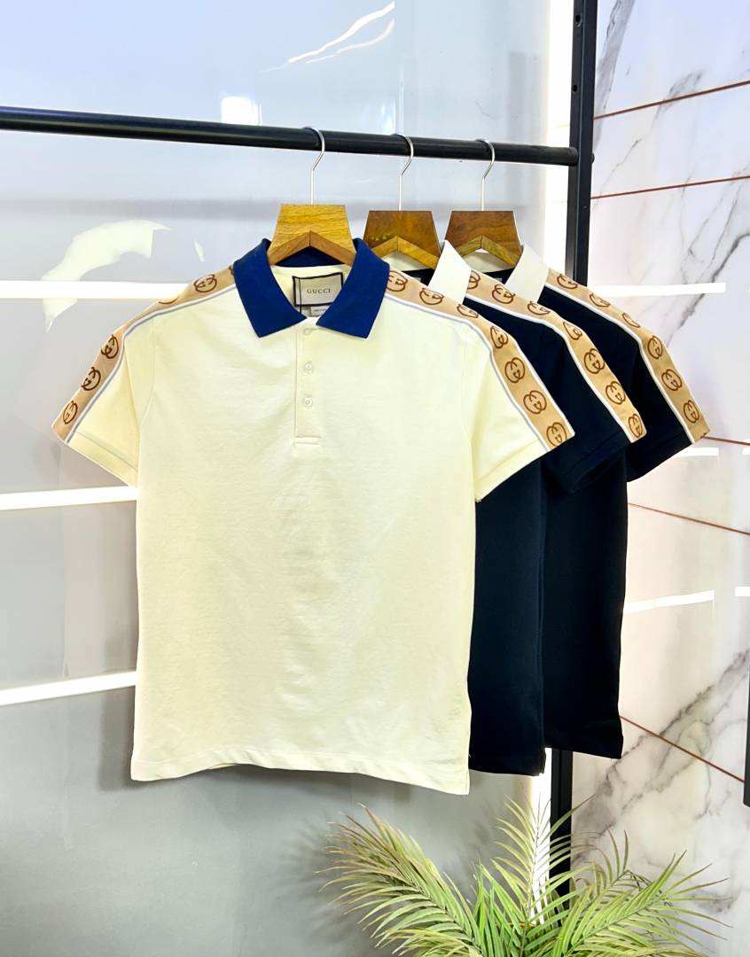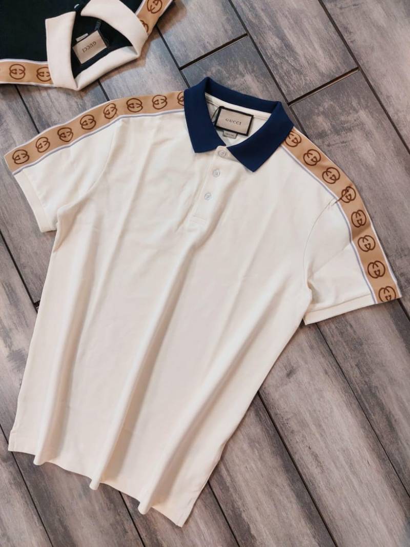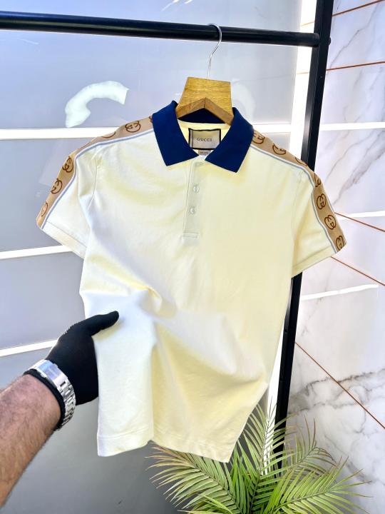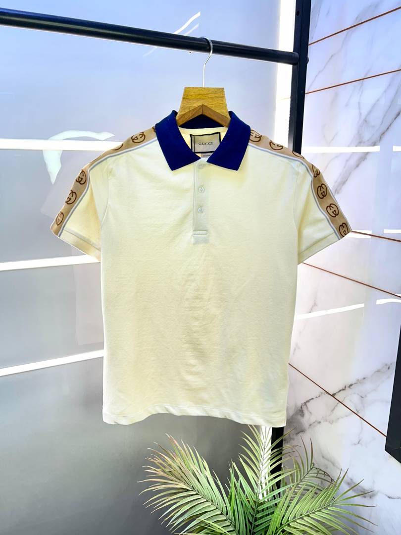 Gucc i Beige Imported Polo Neck Premium Collar T-shirt F2915-BE