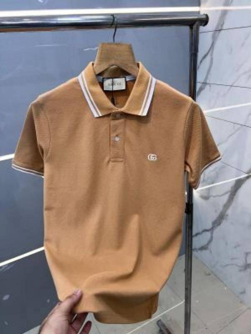 Gucc i Beige Premium Polo TShirt with 275 gsm Pique 4way lycra fabric and Jaquard Collar with Embroidered Logo 2534