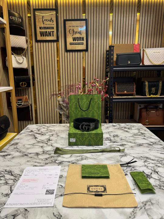 Gucc_i Black GG Marmont Embossed Belt With Box Dust Bag And Carry Bag (22-5)