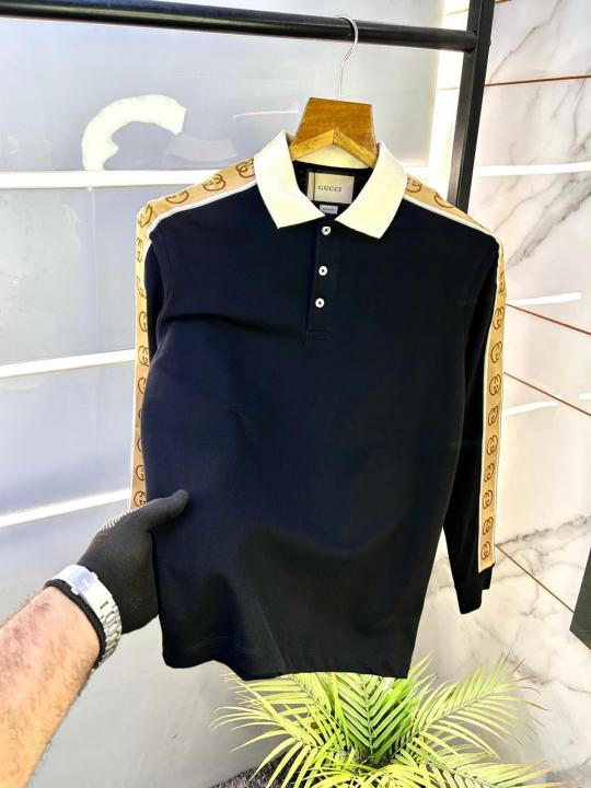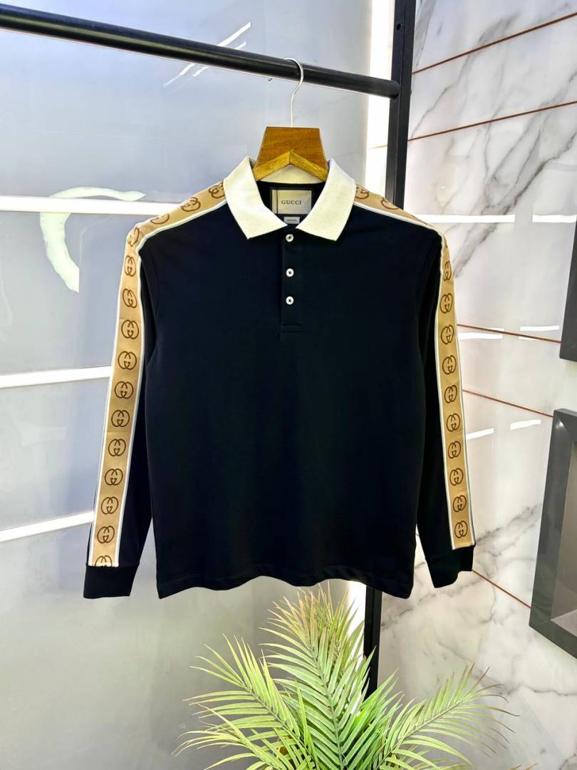 Gucc i Black Polo Neck Full Sleeves Premium Collar T-shirt F3046-B2