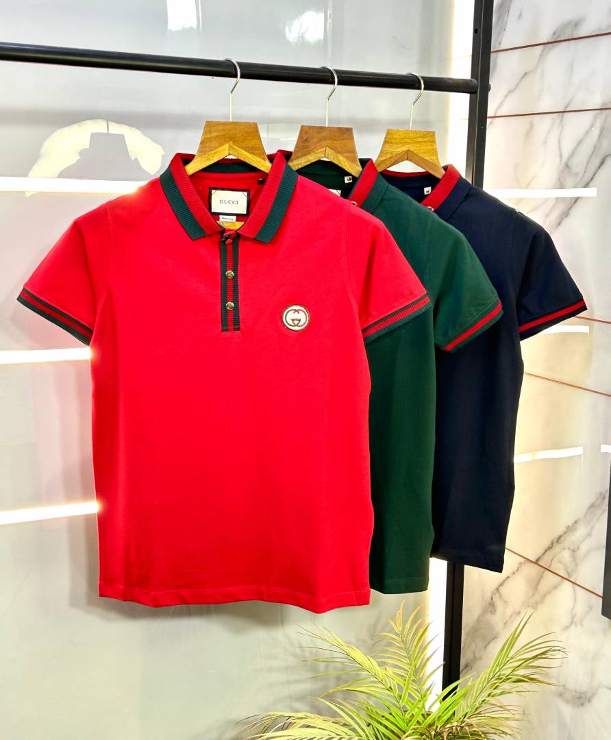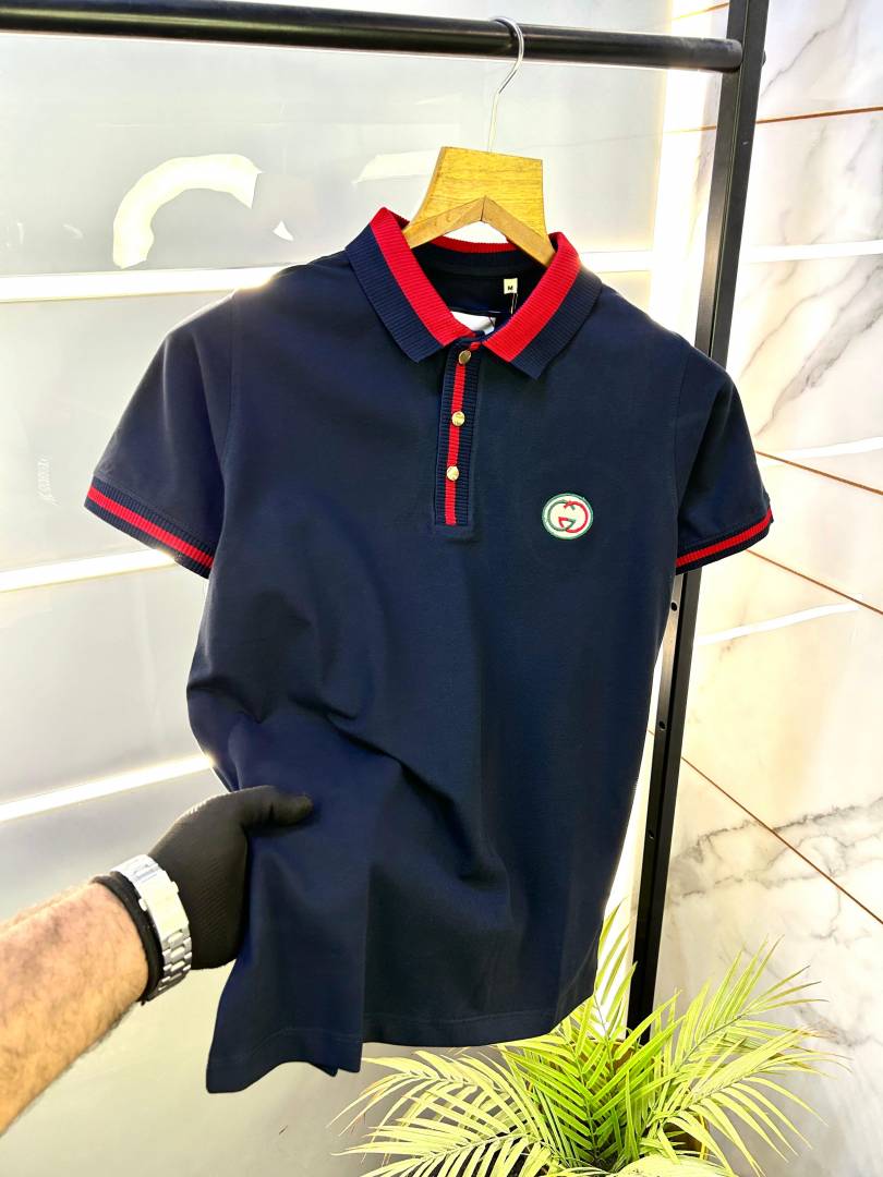 Gucc i Navy Polo Embroidery Logo Premium Collar Neck T-shirt F2681-NY