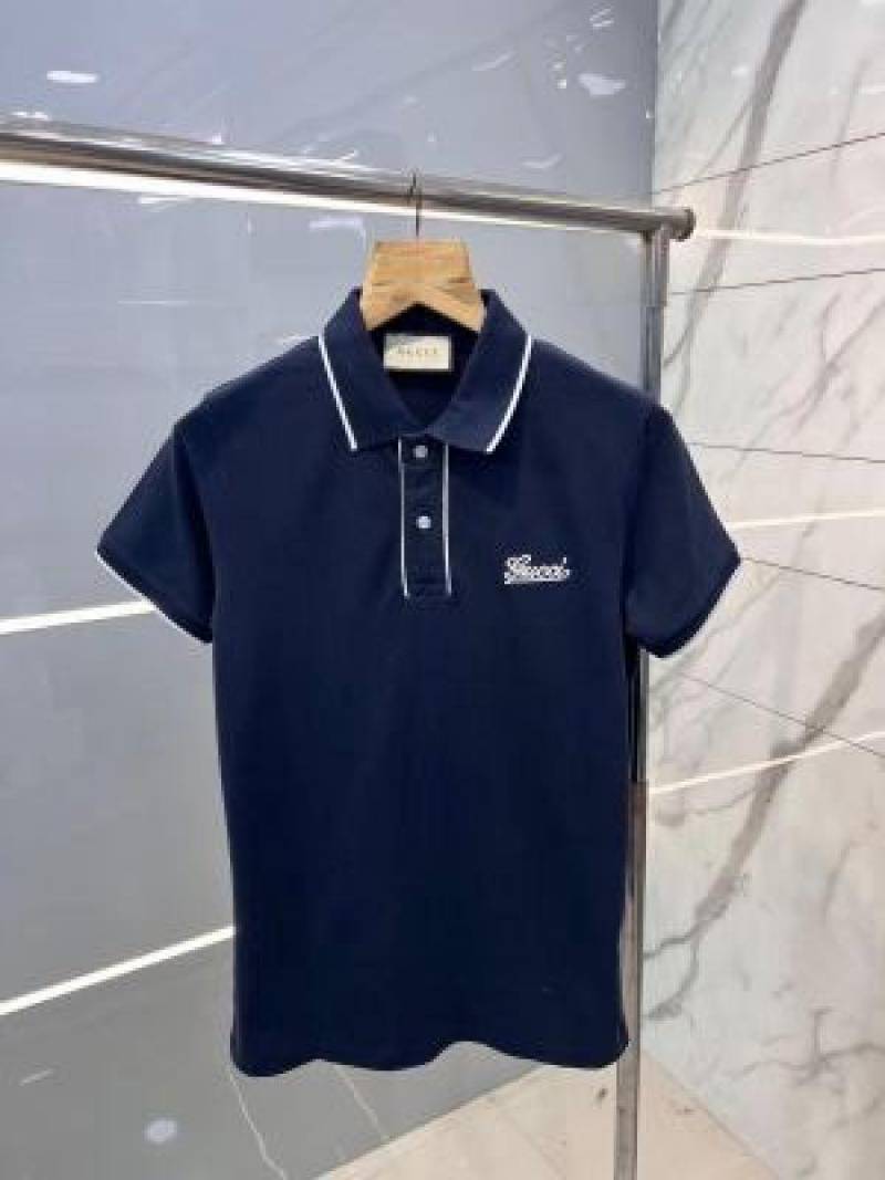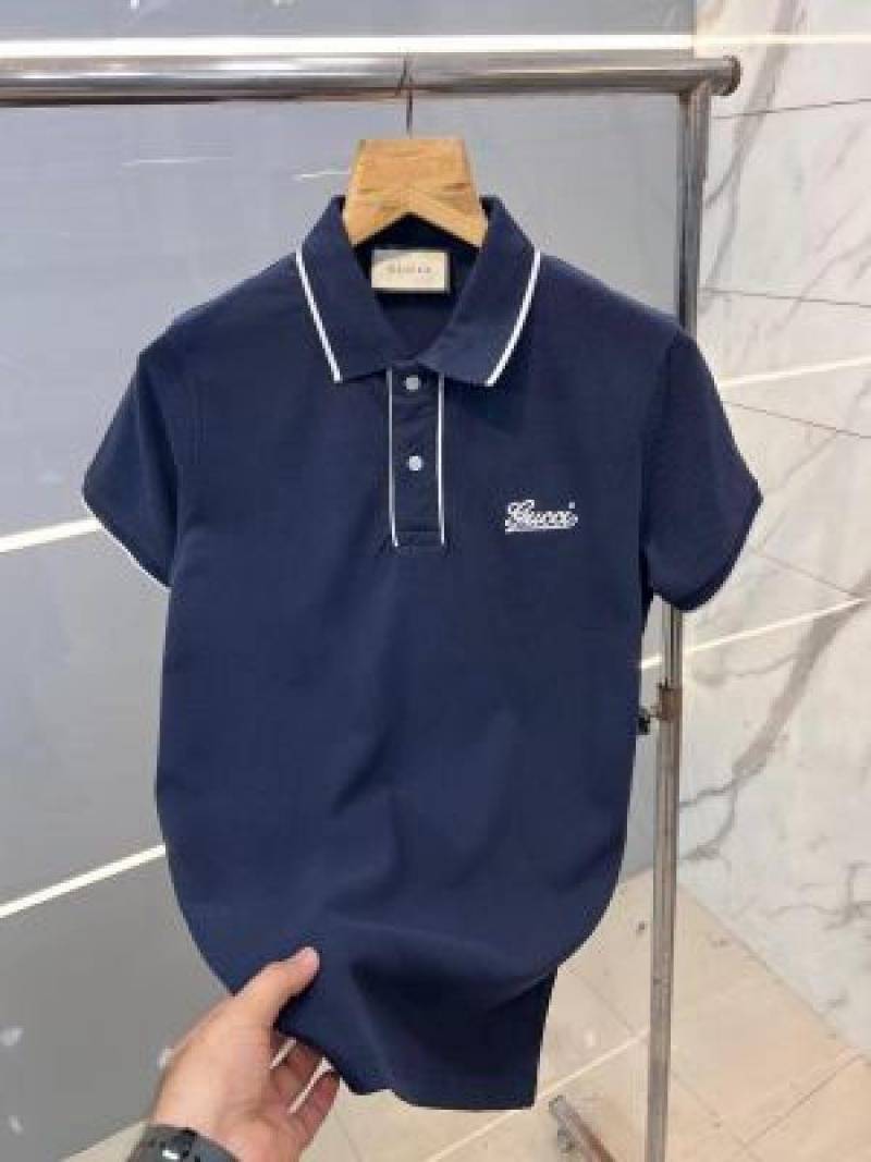 Gucc i Navy Premium Polo TShirt with 275 gsm Pique 4way lycra fabric and Jaquard Collar with Embroidered Logo 2533