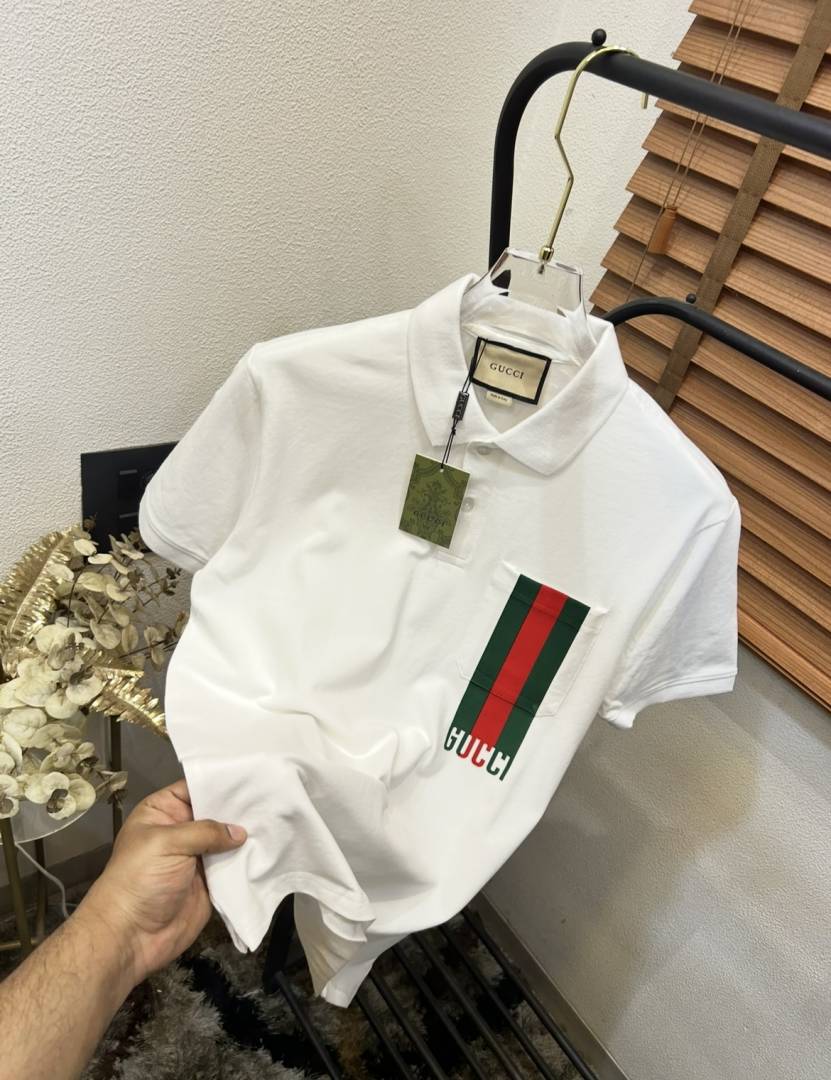 Gucc_i Pocket Signature Printed Imported Very Premium Polo T-shirt (DN 533)