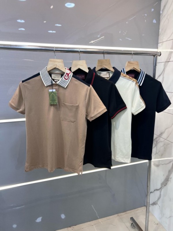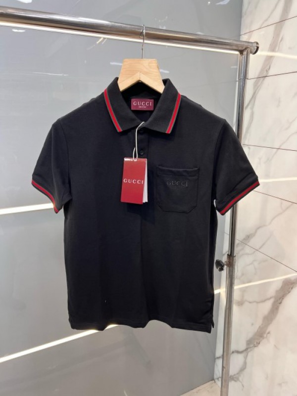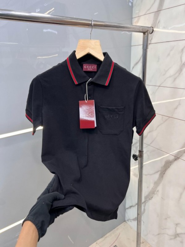 Gucc i Premium 240 GSM Interlock Lycra Fabric Polo with Collar Design and Pocket Style Black 1997