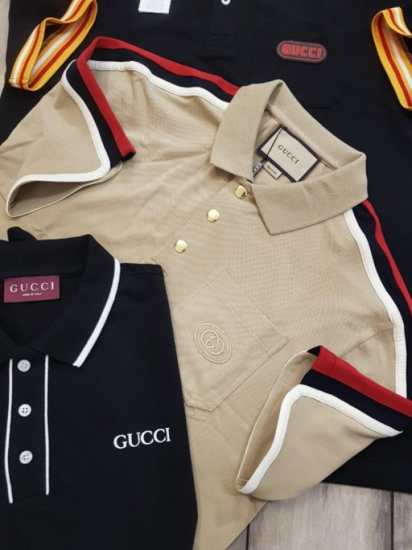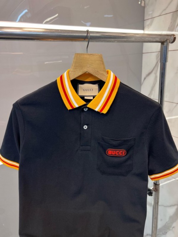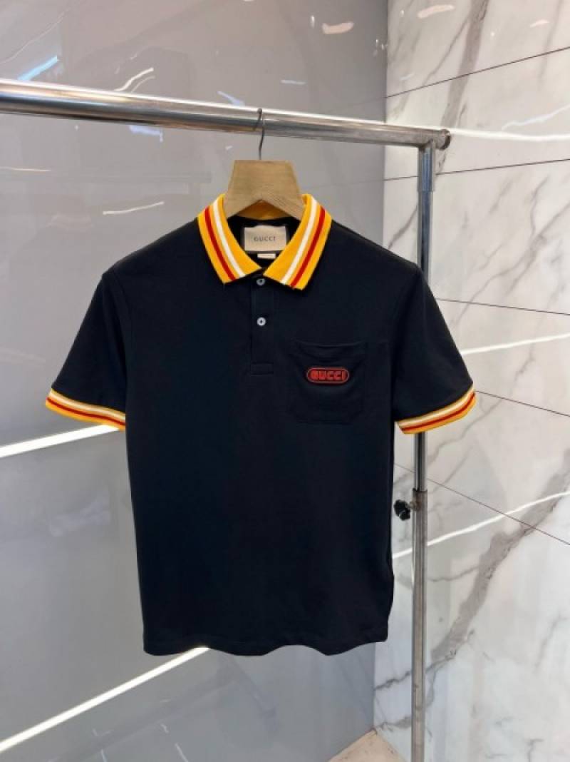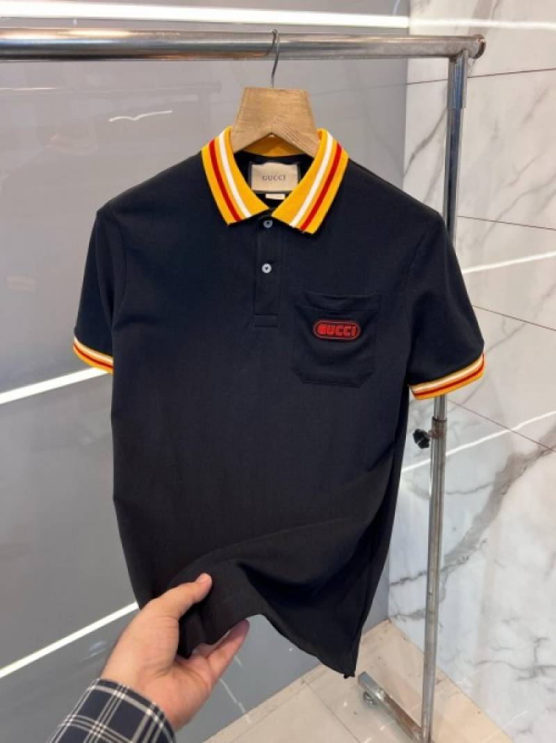 Gucc i Premium Polo With 240Gsm Interlock Cotton Lycra Fabric and Collar Design Black 2136