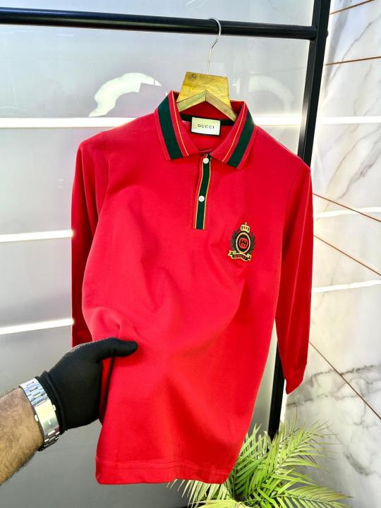 Gucc i Red Polo Neck Full Sleeves Premium Collar T-shirt F3083-RE