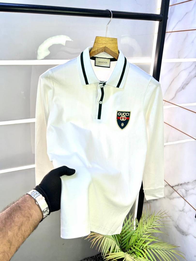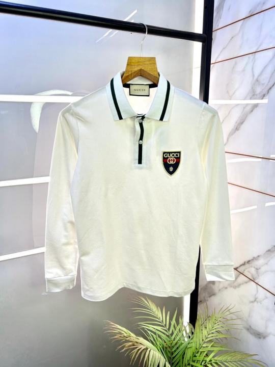 Gucc i White Polo Neck Full Sleeves Premium Collar T-shirt F3083-WH
