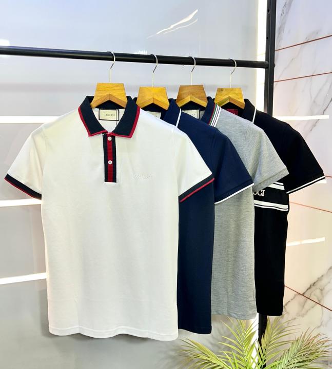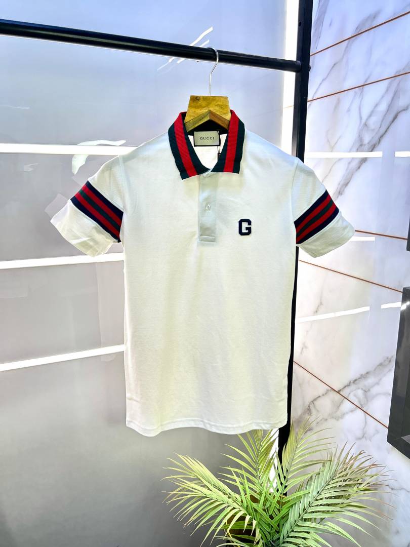 Gucc i White Polo Premium Collar Neck T-shirt F2716-W3