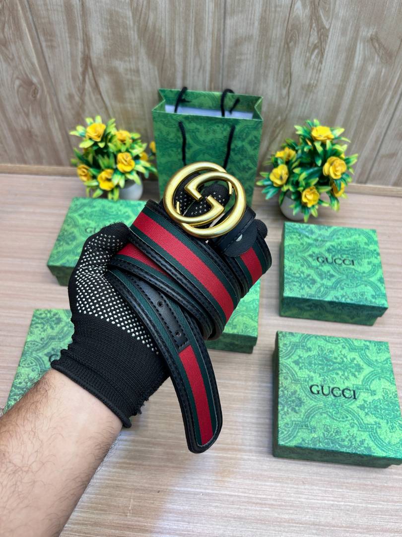 Mont Blanc Belt Combo Gold And Silver Buckle With Box Dust Bag Including CarryBag (20-1)