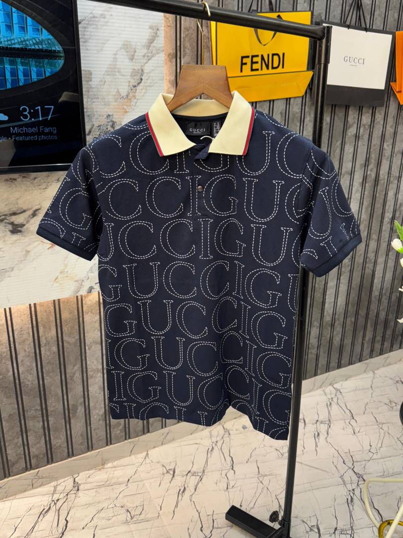 .GUCCI.IMPORTED.ALL.OVER.MONOGRAM.EMBOSSED.PRINTED.VERY.PREMIUM.POLO.NECK.TSHIRT.MR111