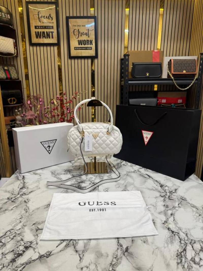 Guess Eco Rianee Shoulder Bag With Box And Dust Bag Including Carry Bag (White)