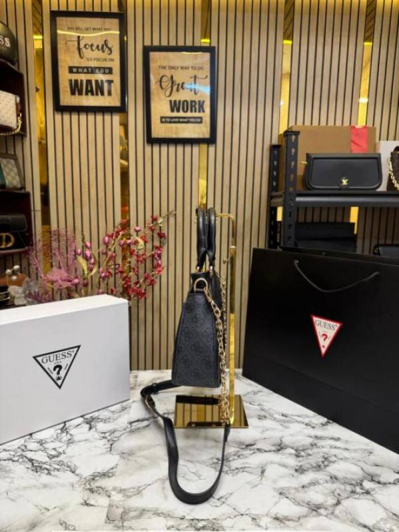 Guess Faux Leather Handbag With Box And Dust Bag Including Carry Bag (Black Black)
