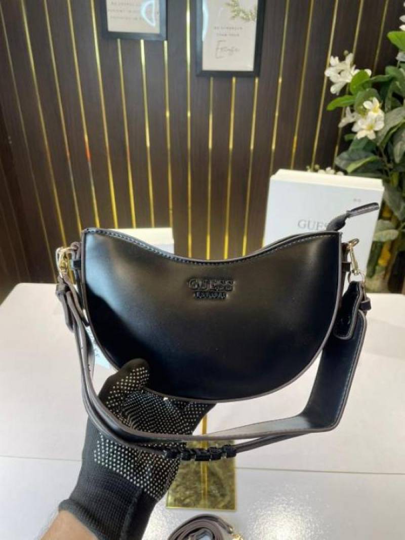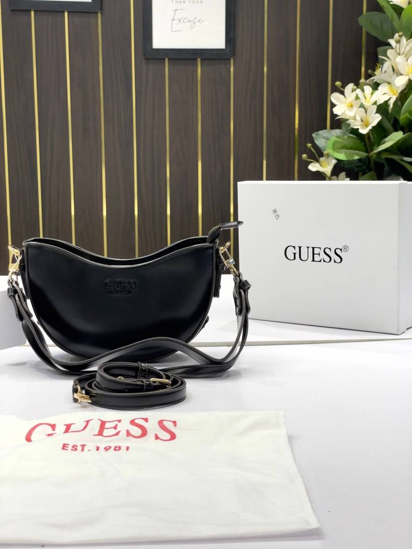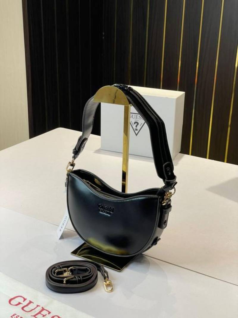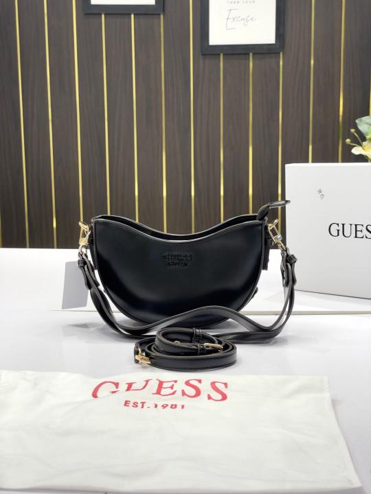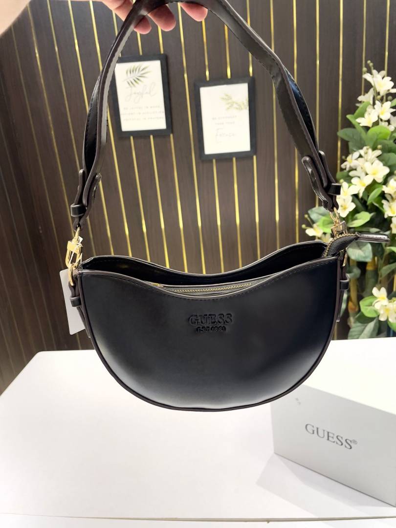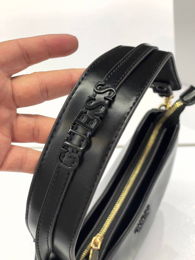 _Guess_half_moon_top_zipper_shoulder bag with og box(222-black)