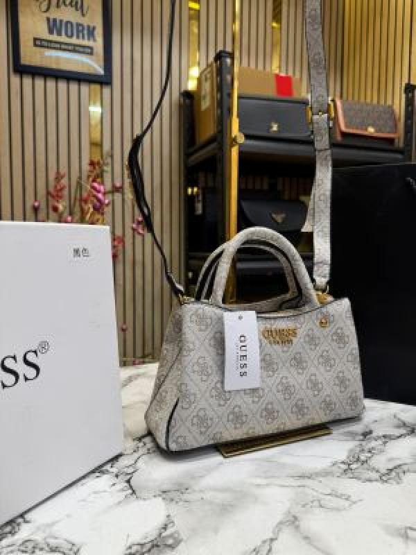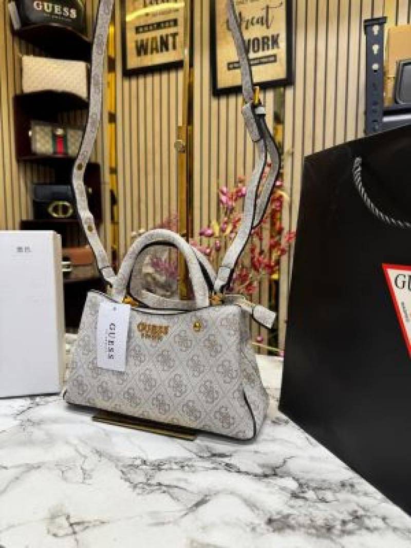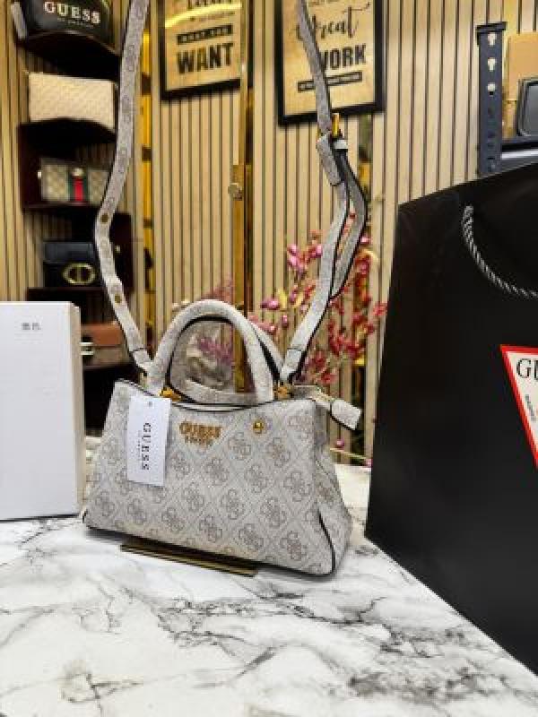 Guess Manhattan Shoulder Bag With Box And Dust Bag Including CarryBag (C2) (Beige white)