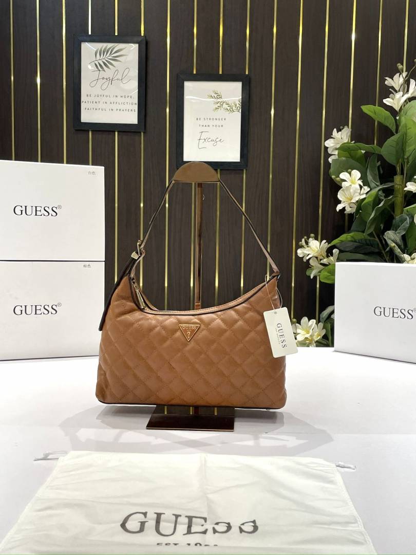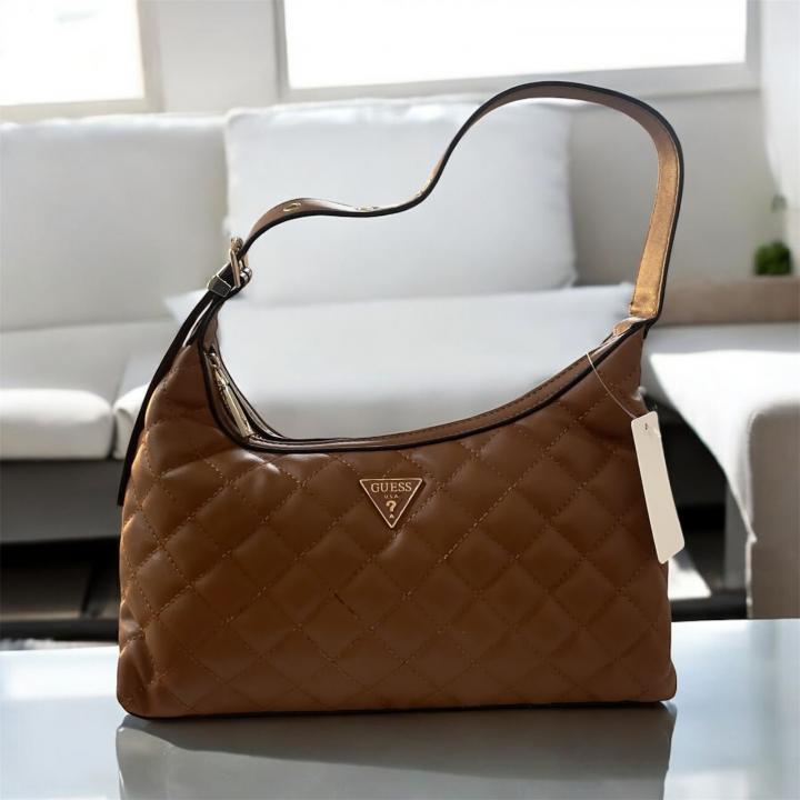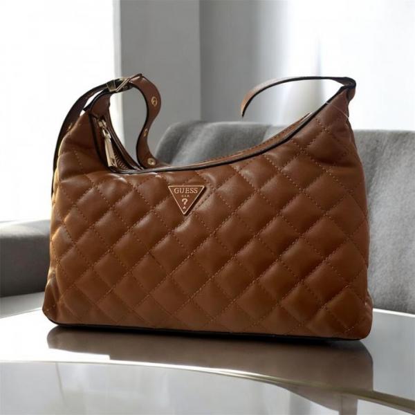 Guess rianee eco quilted 30cm handbag with og box(5308-Brown)