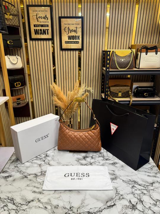 Guess Rianee Shoulder Bag With Box And Dust Bag Including Carry Bag (Brown)