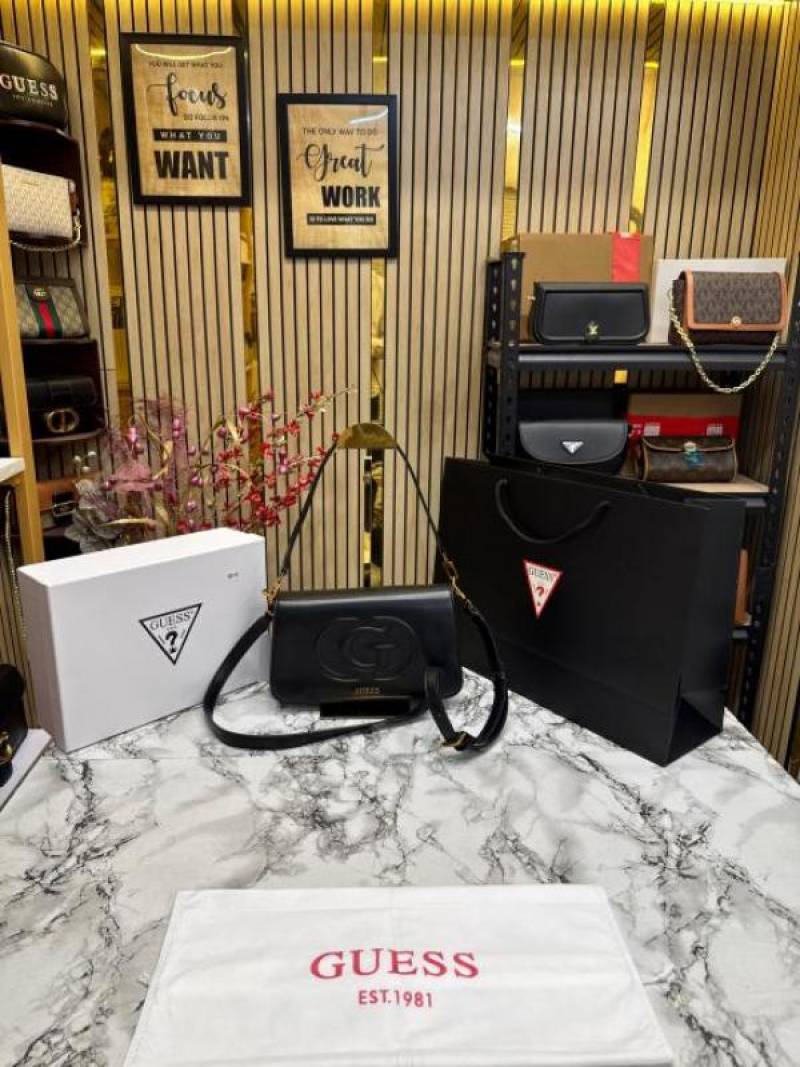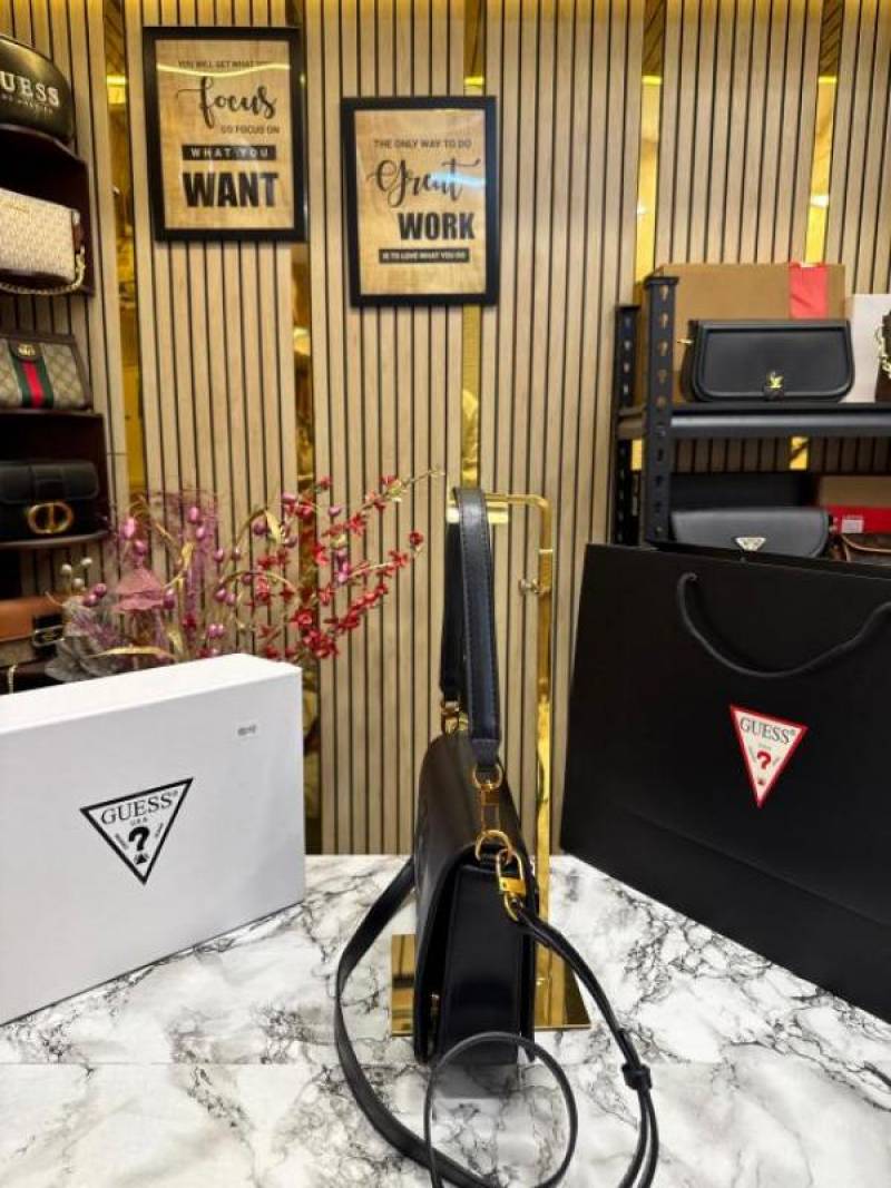 Guess Womens Eco Mietta Flap Shoulder Bag with box and dust bag including carry bag (Black)