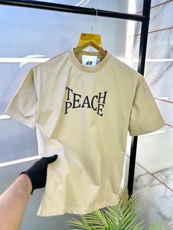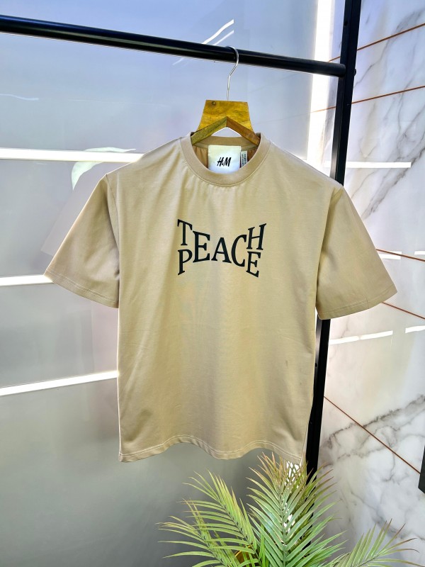 Sale H & M Eagle Edition Back Printed Drop Shoulder Beige Premium Round Neck T-shirt F2371-BE