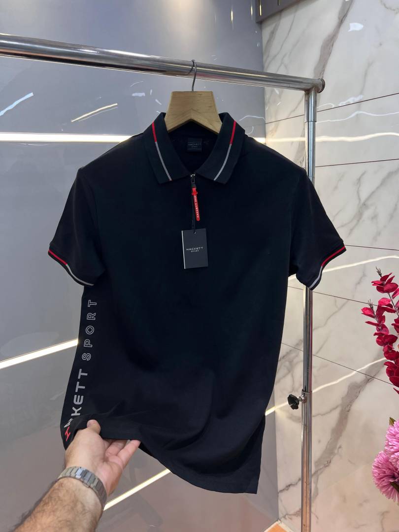 Hacke t Black Premium 240 gsm interlock compact cotton fabric Polo Tshirt with Collar and Sleeves Design Zip Style 3212