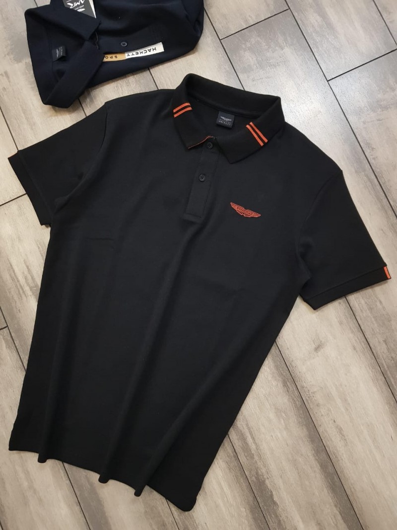 Aston Martin Hacket t Black Polo Premium Collar Neck T-shirt F2873-BL