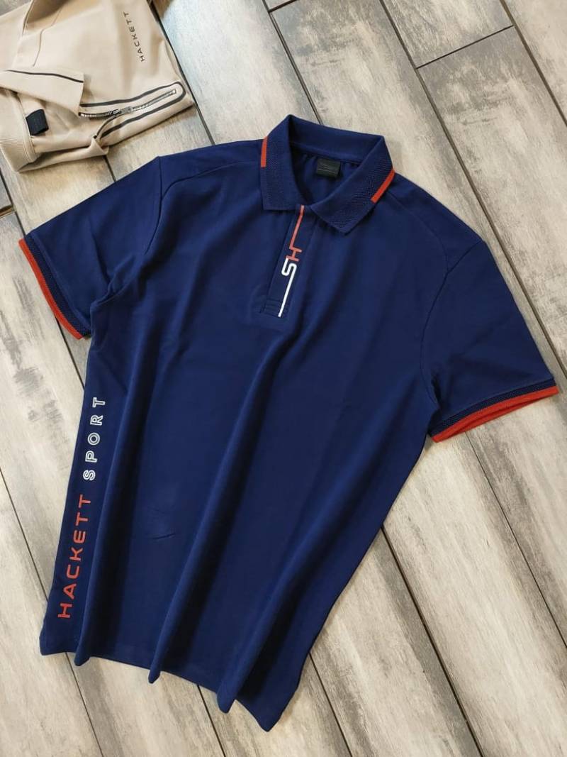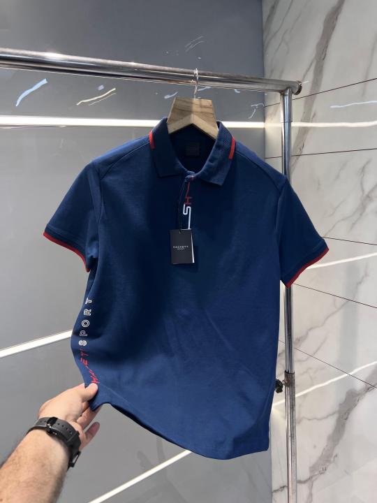 Hacket t Blue Premium Cotton Lycra Pique fabric Polo Tshirt with Collar Design and Emboss Logo 2985