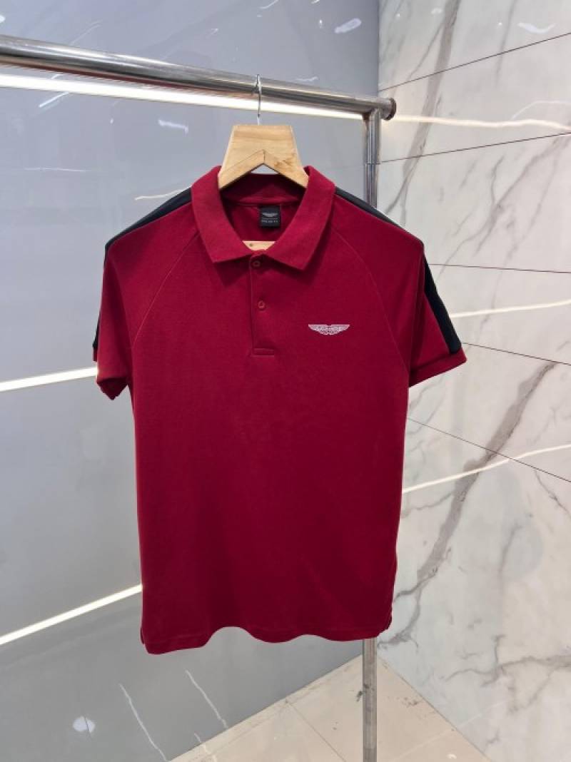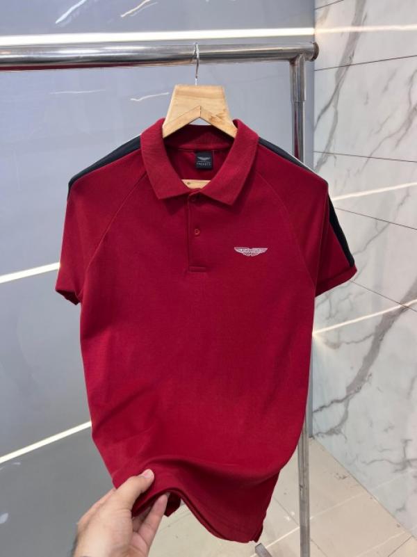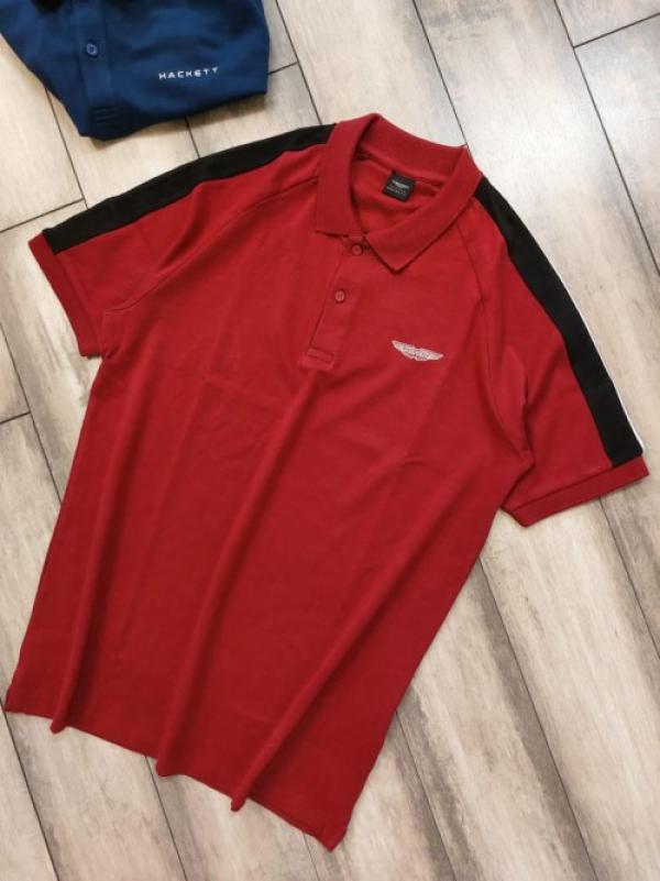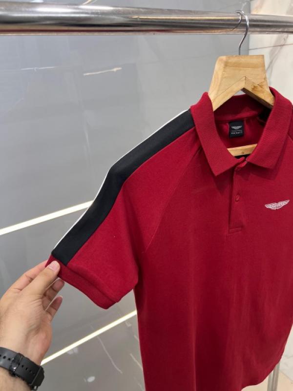 Hacket t Maroon Premium Polo T shirt With 240 gsm interlock cotton lycra fabric and Sleeves Strip Design with Logo Printed 2528