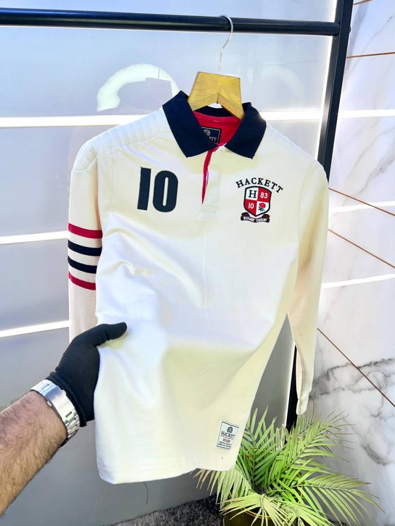 Hacket t Offwhite Polo Neck Back Printed Full Sleeves Premium Collar T-shirt F3087-OF