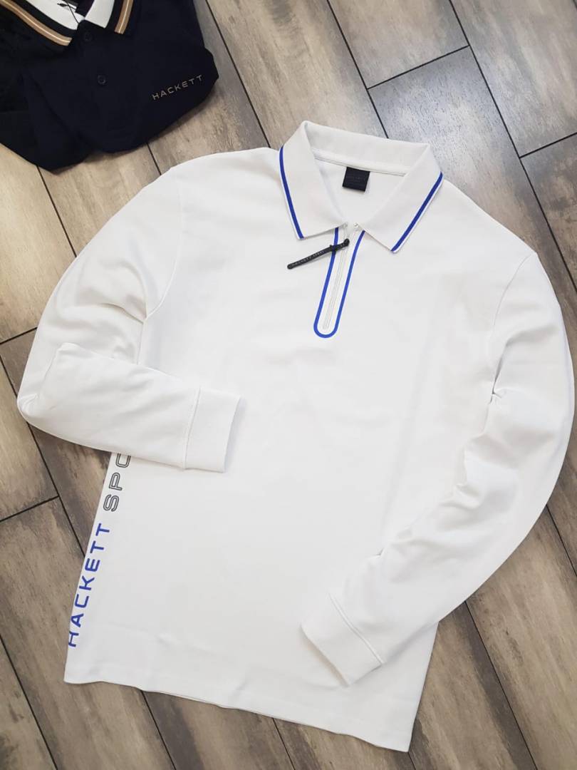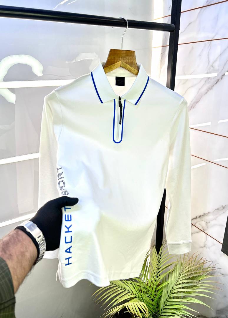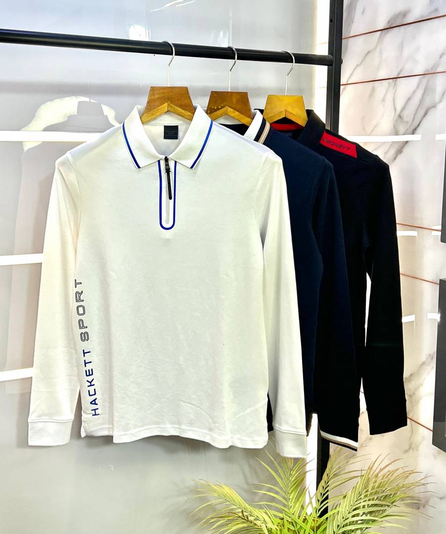 Hacket t White Polo Neck Full Sleeves Premium Collar T-shirt F2773-WH