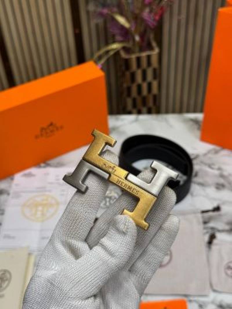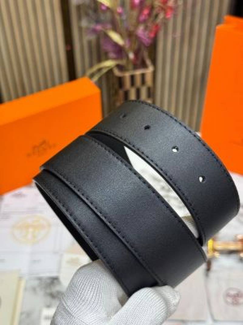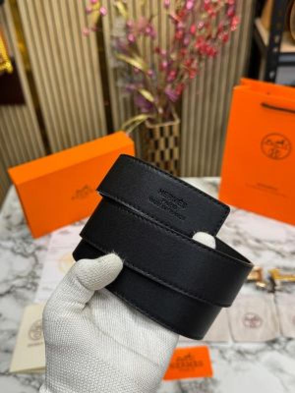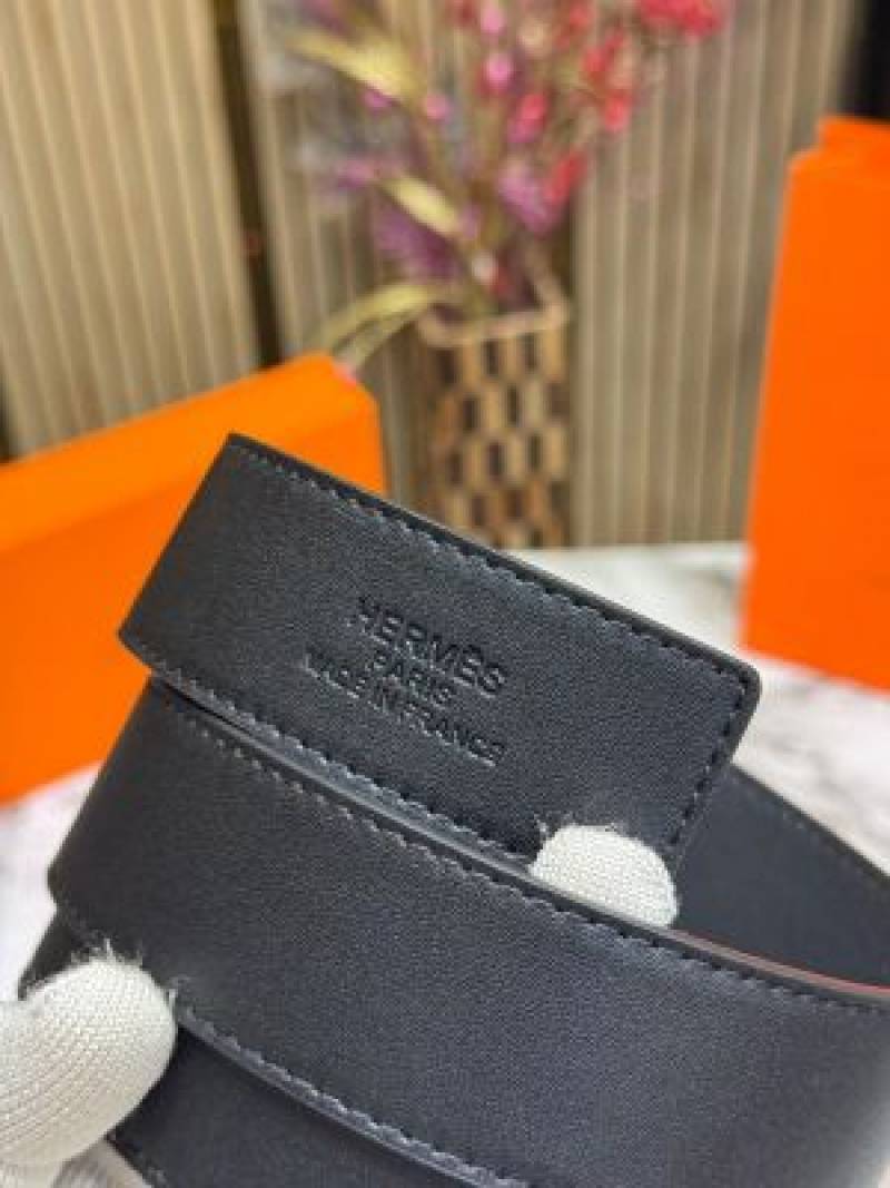 Hermes black leather belt with black h buckle full set includes (12-4)