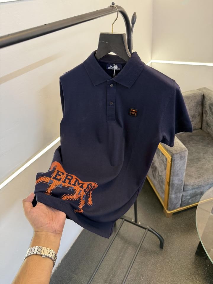 Hermes turkey imported polo tshirt with brand button steel logo and premium print navy sale