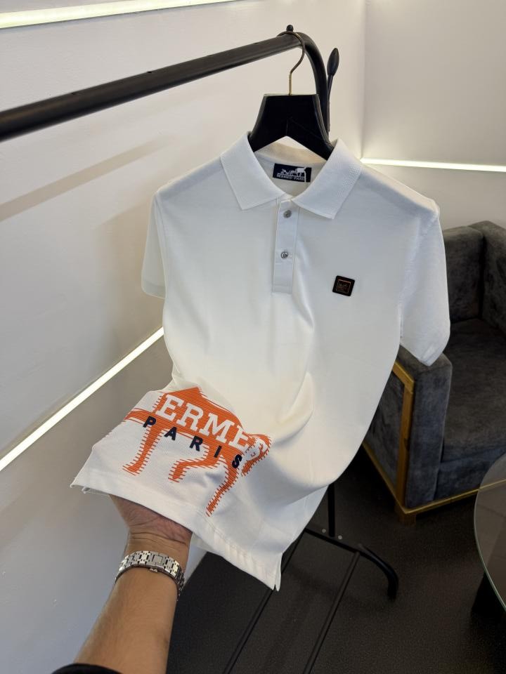 Hermes turkey imported polo tshirt with brand button steel logo and premium print white sale