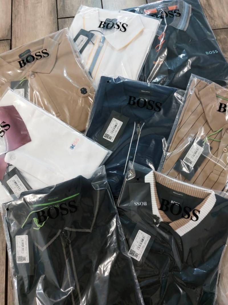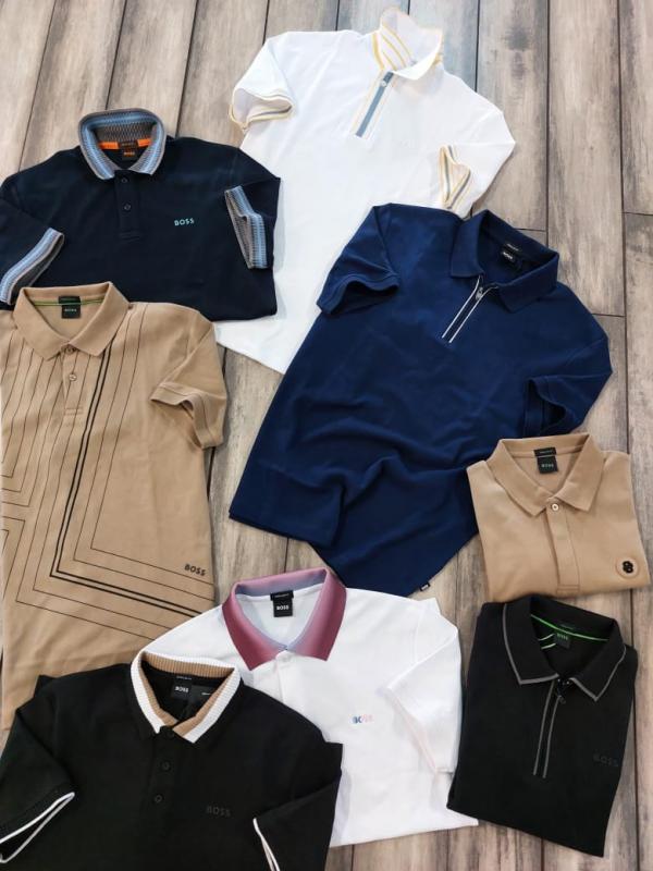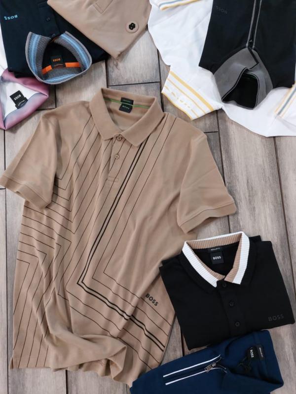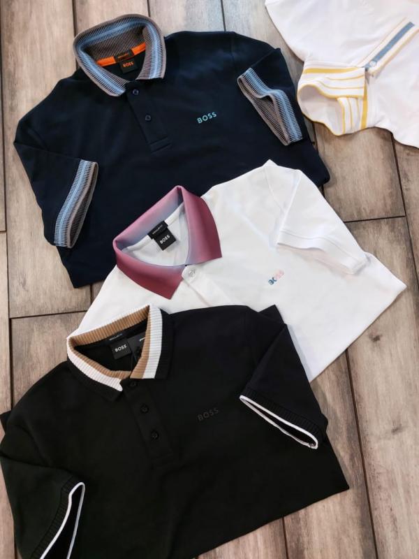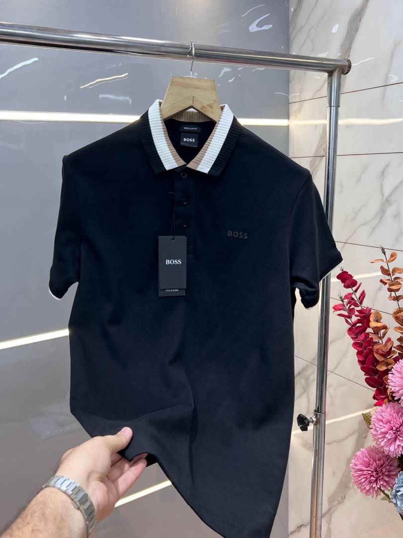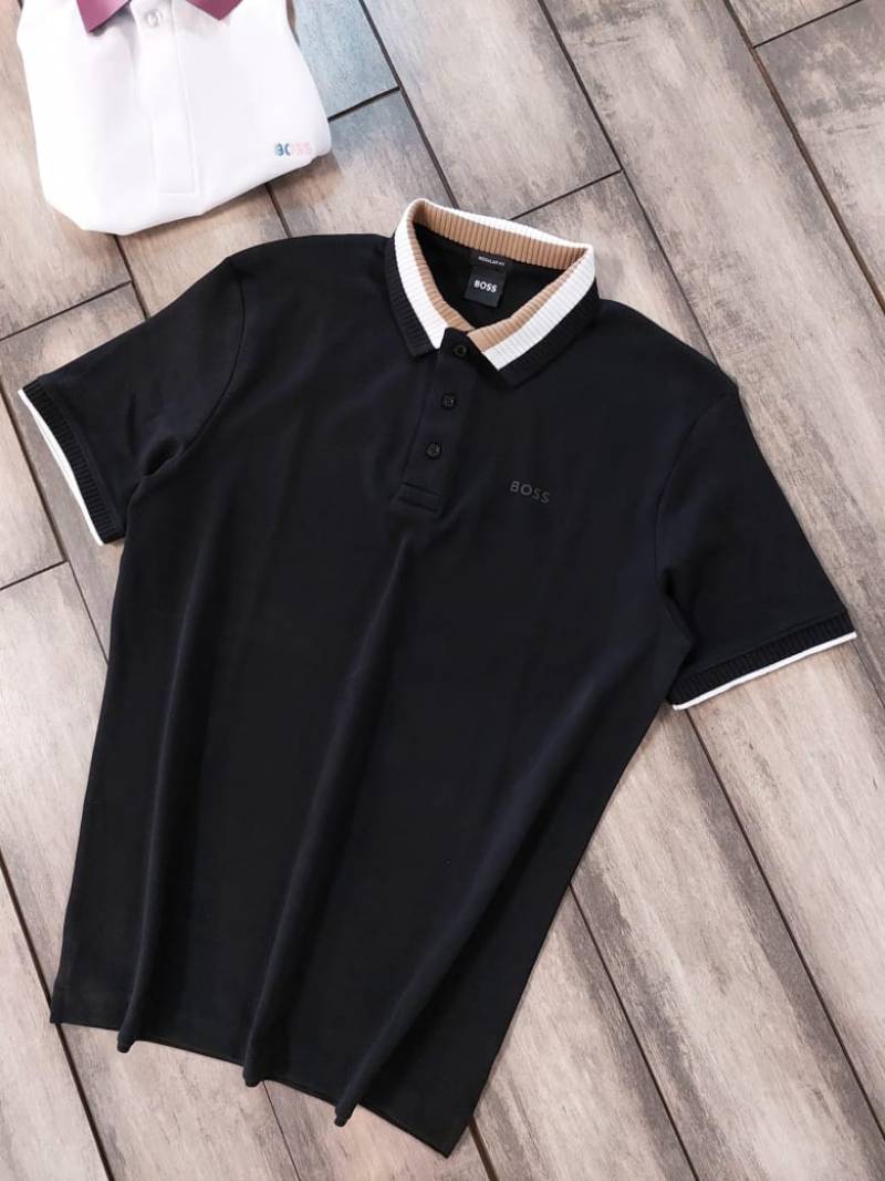 Hugo Bos s Black Premium 240 gsm interlock compact cotton fabric Polo Tshirt with Collar Design and Emboss Logo 3277