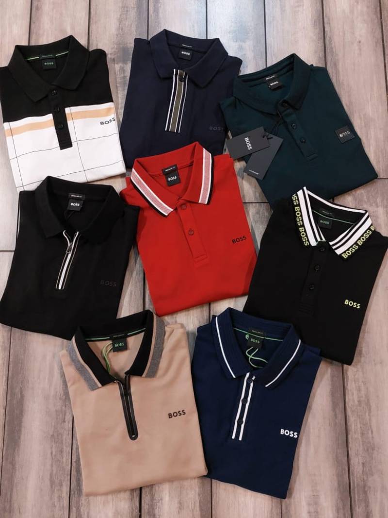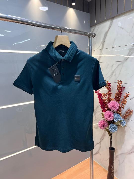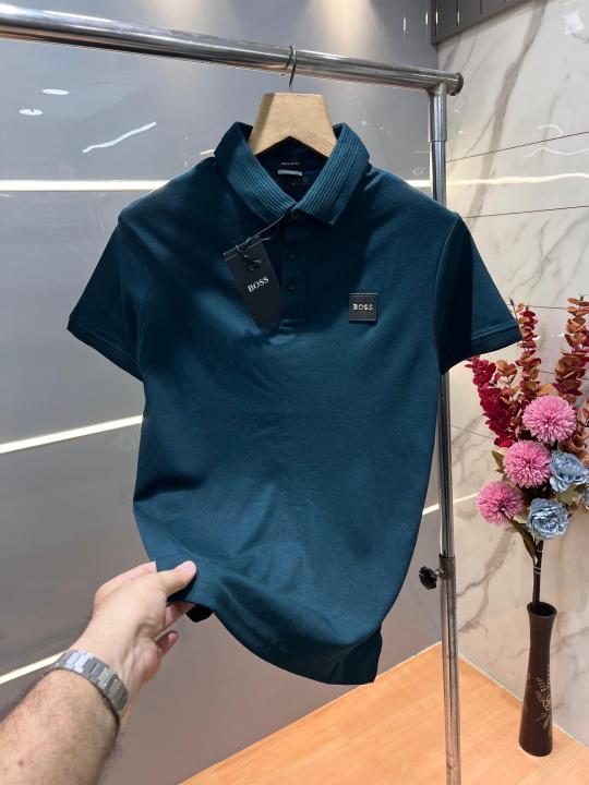 Hugo Bos s Green Premium 240 gsm interlock cotton fabric Polo Tshirt with Front Design and Patch Logo 3173