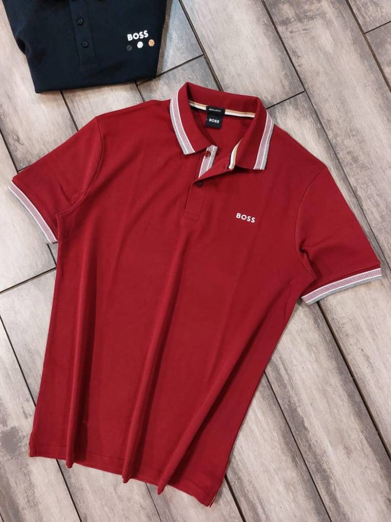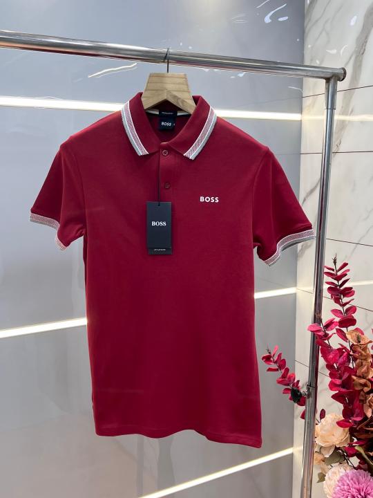 Hugo Bos s Maroon Premium 240 gsm interlock compact cotton fabric Polo Tshirt with Collar Design and Emboss Logo 3363