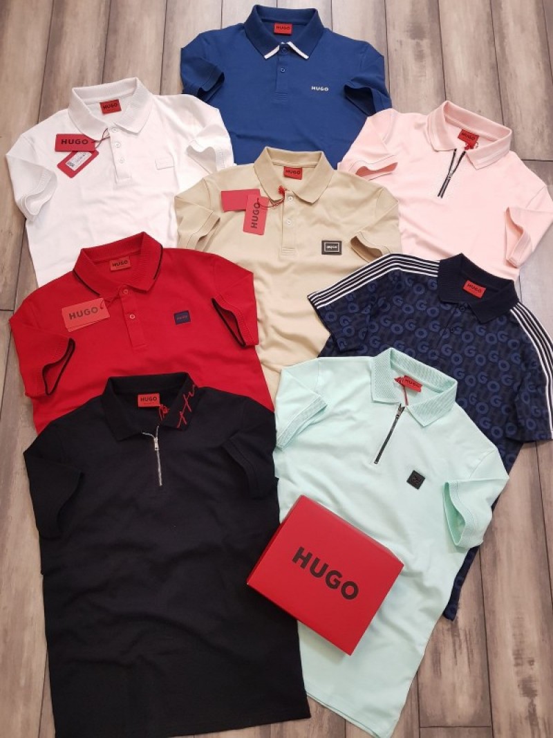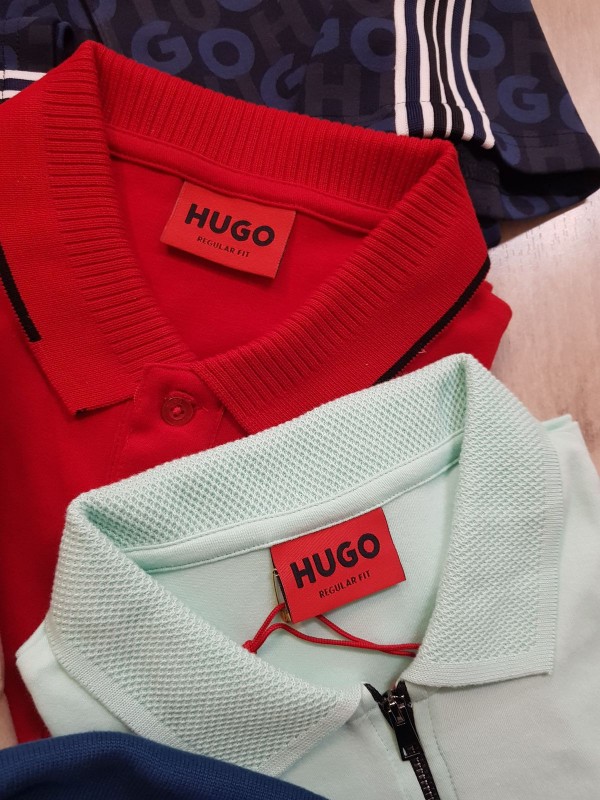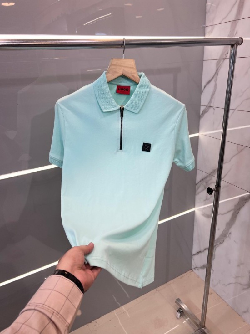 Hugo Bos s Metal Logo Designer Polo Zip Style T-shirt with Brand Box sale offer (728)