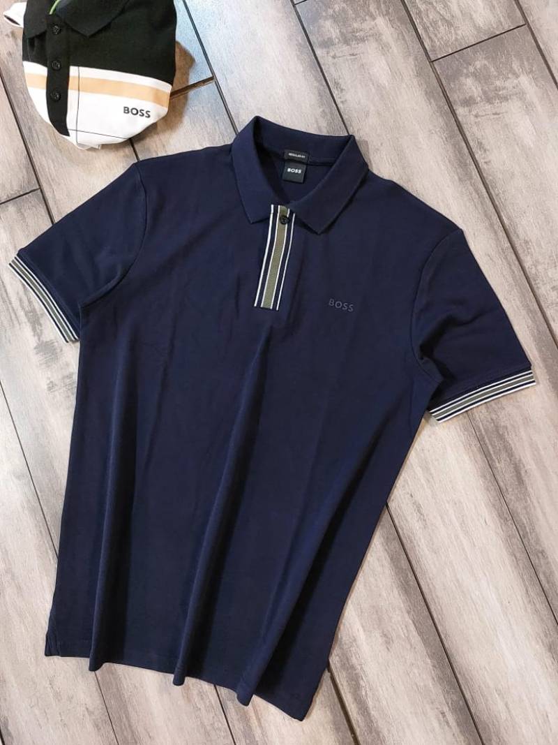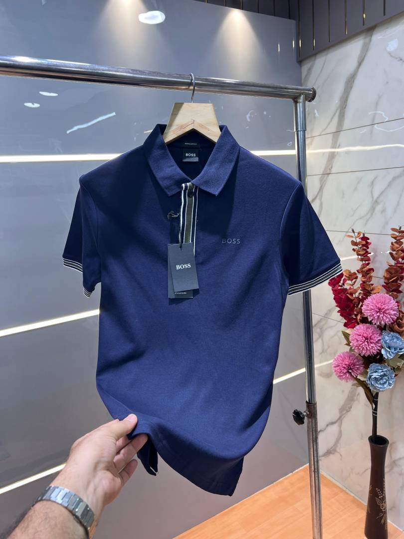Hugo Bos s Navy Premium 240 gsm interlock cotton fabric Polo Tshirt with Front Design and Emboss Logo 3178