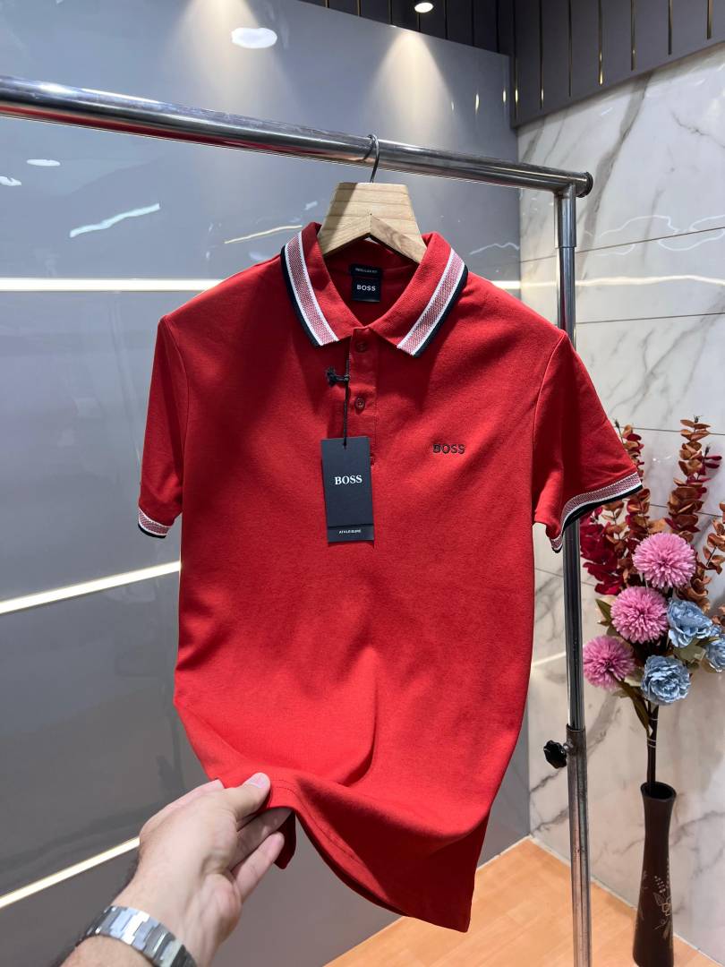 Hugo Bos s Red Premium 240 gsm interlock cotton fabric Polo Tshirt with Collar Design and Emboss Logo 3179