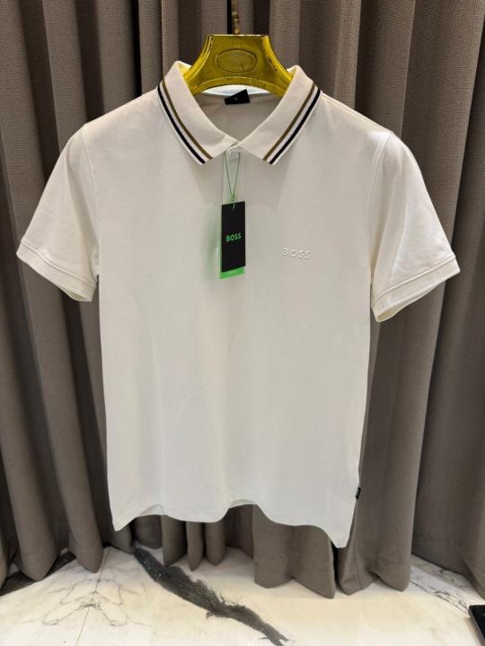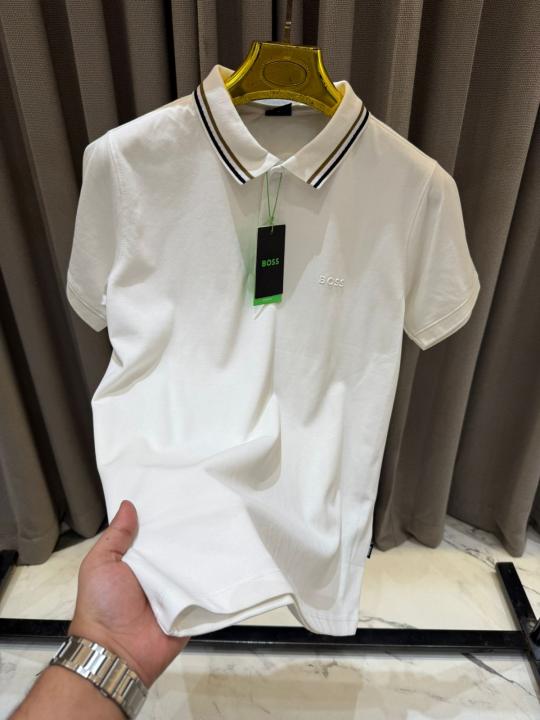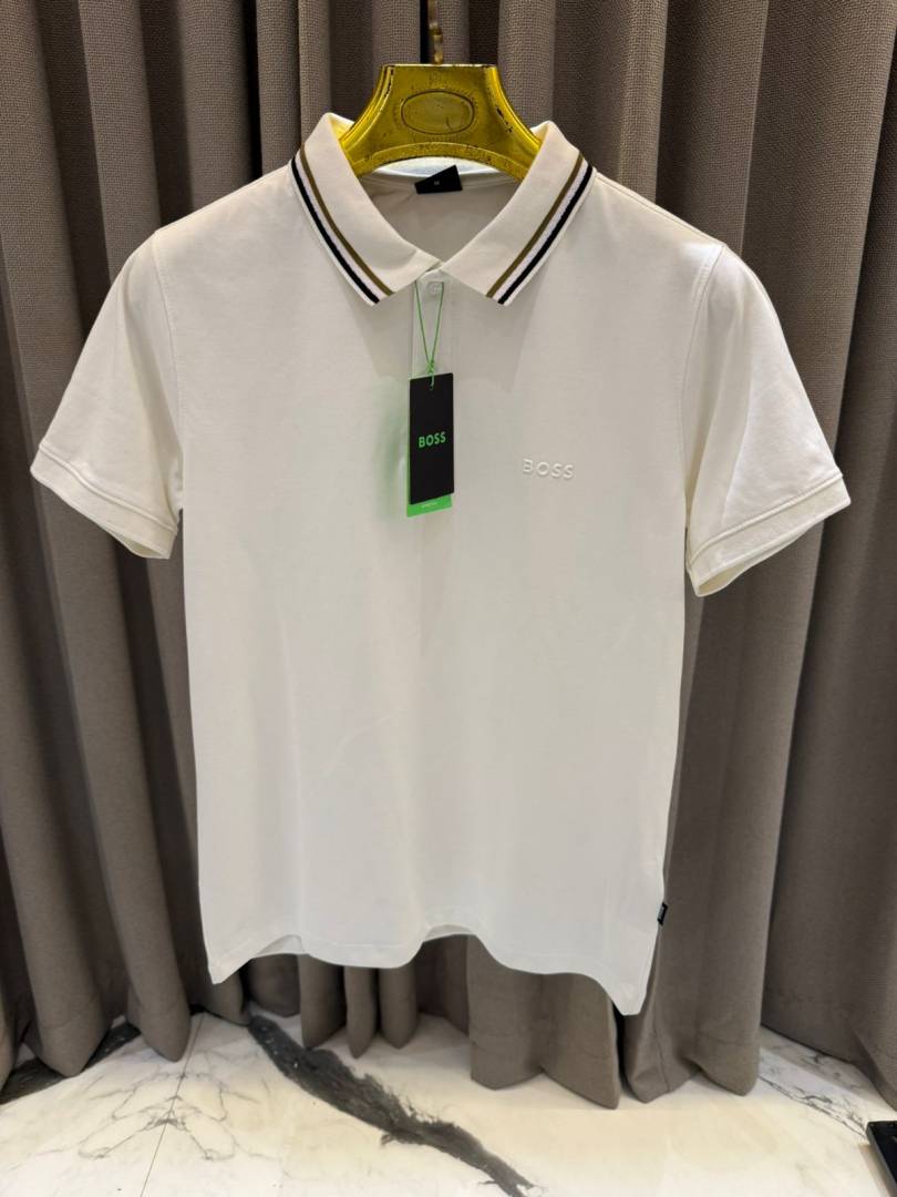 Hugo Bos s Pink Premium 240 gsm interlock compact cotton fabric Polo Tshirt with Collar Design and Emboss Logo 3362