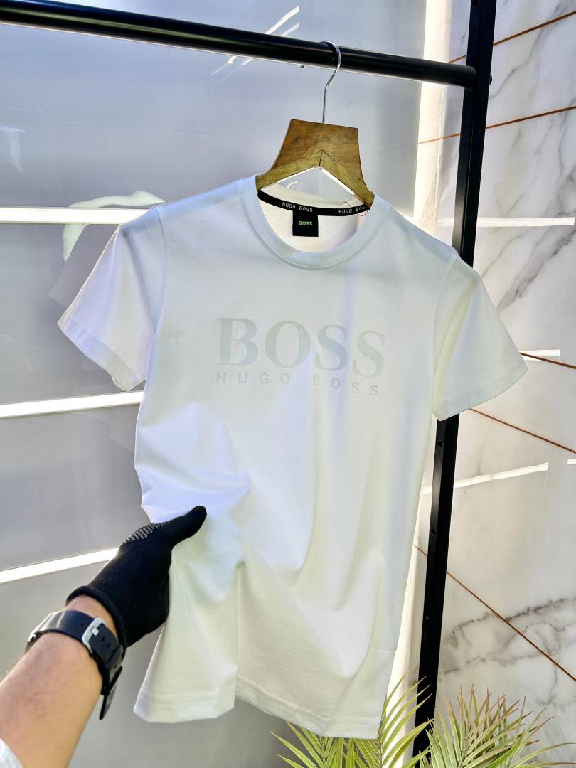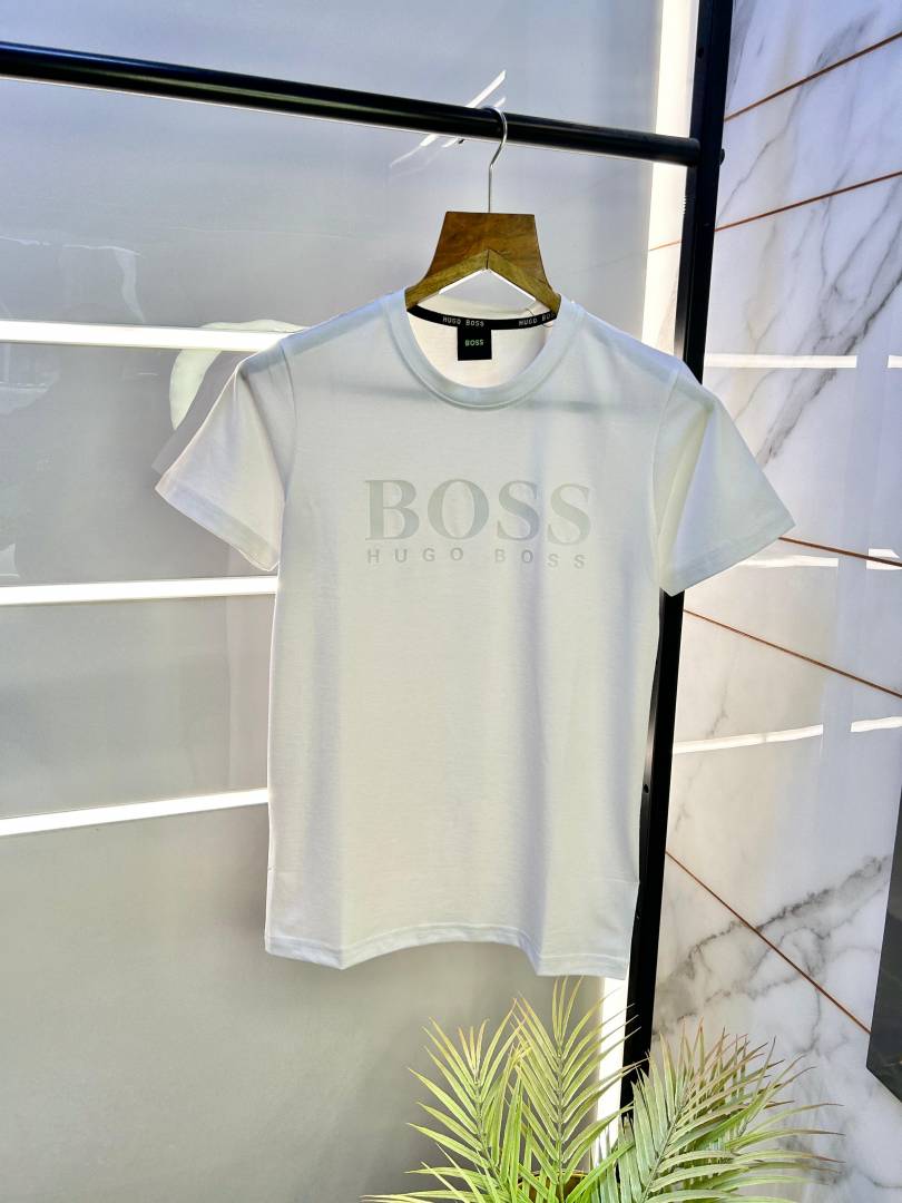 Hugo_Boss Embossed Print White Premium Round Neck T-shirt F2490-WH
